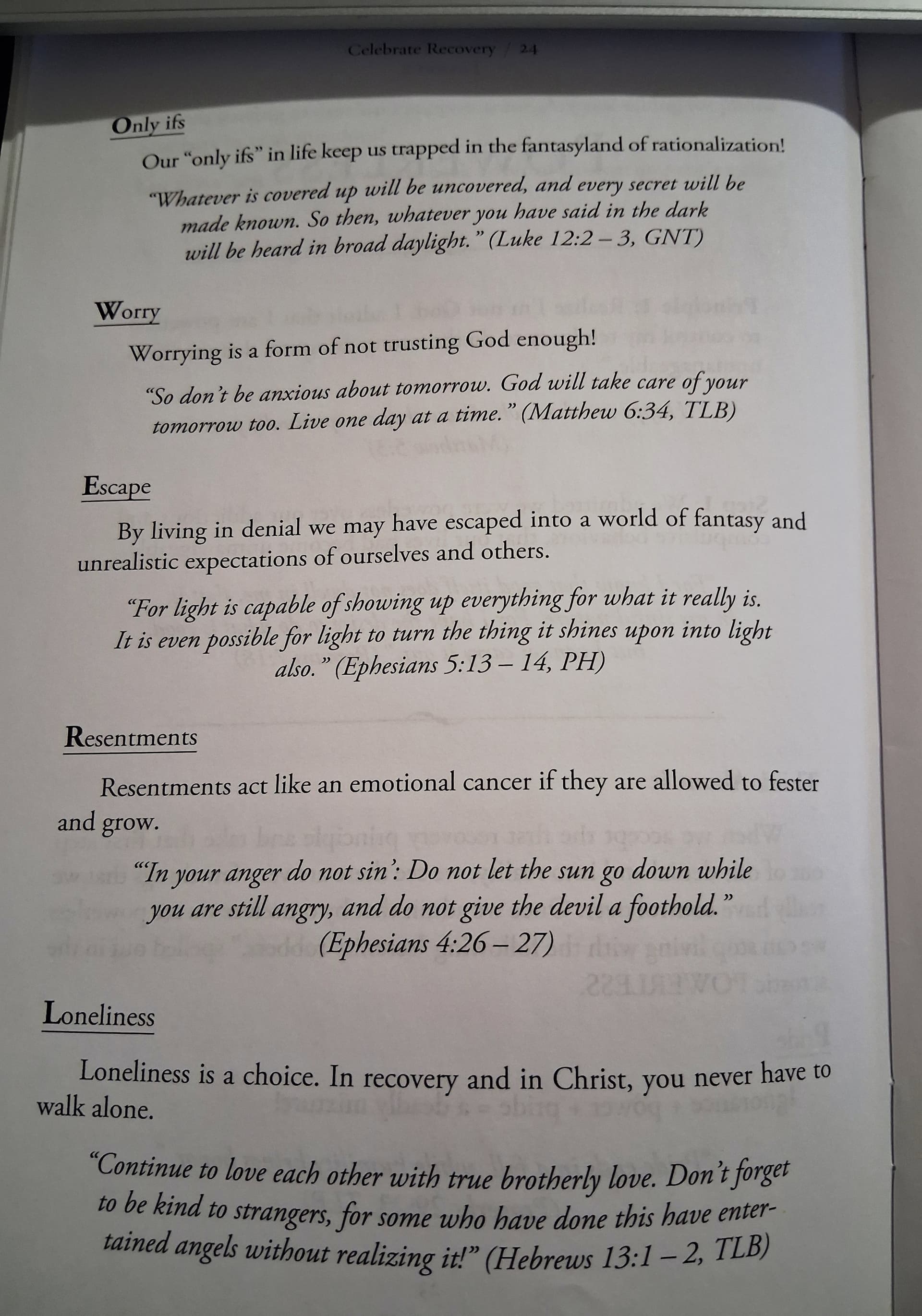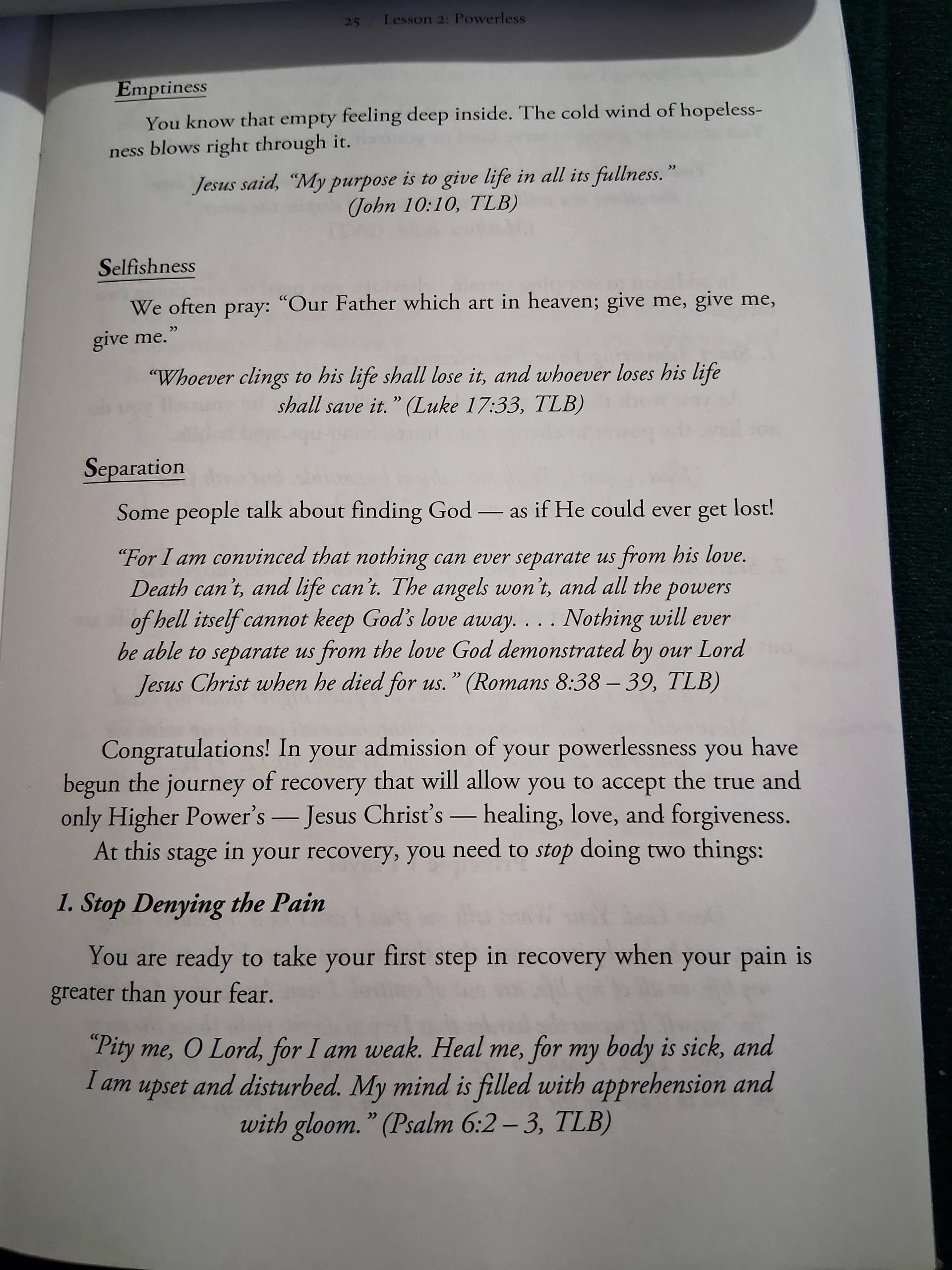 These ideas, are in the Celebrate Recovery work book, part 1, called Stepping out of denial into God’s grace