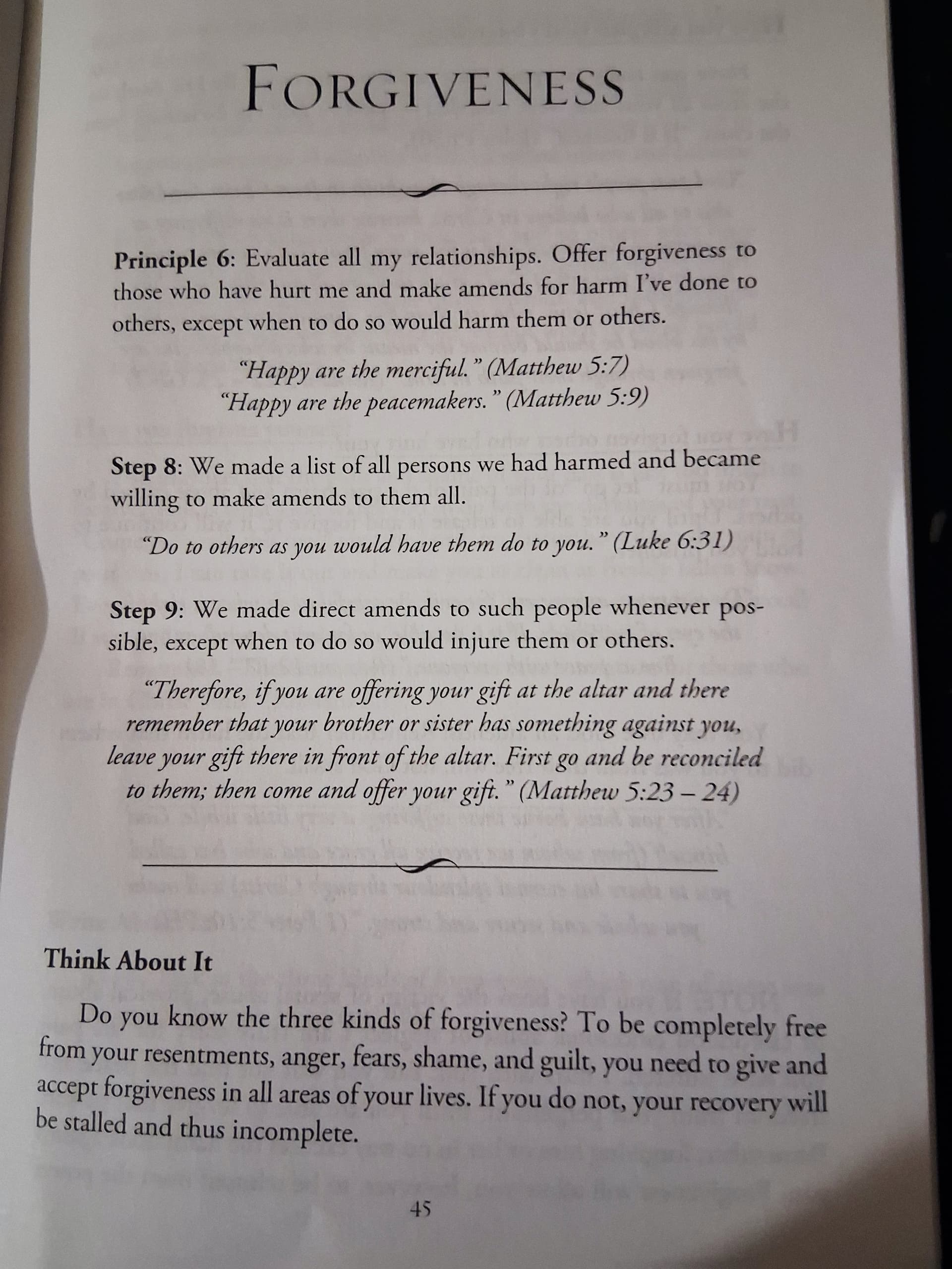 As you look at the three kinds of forgiveness, which one of them was the easiest for you to accept? Why?