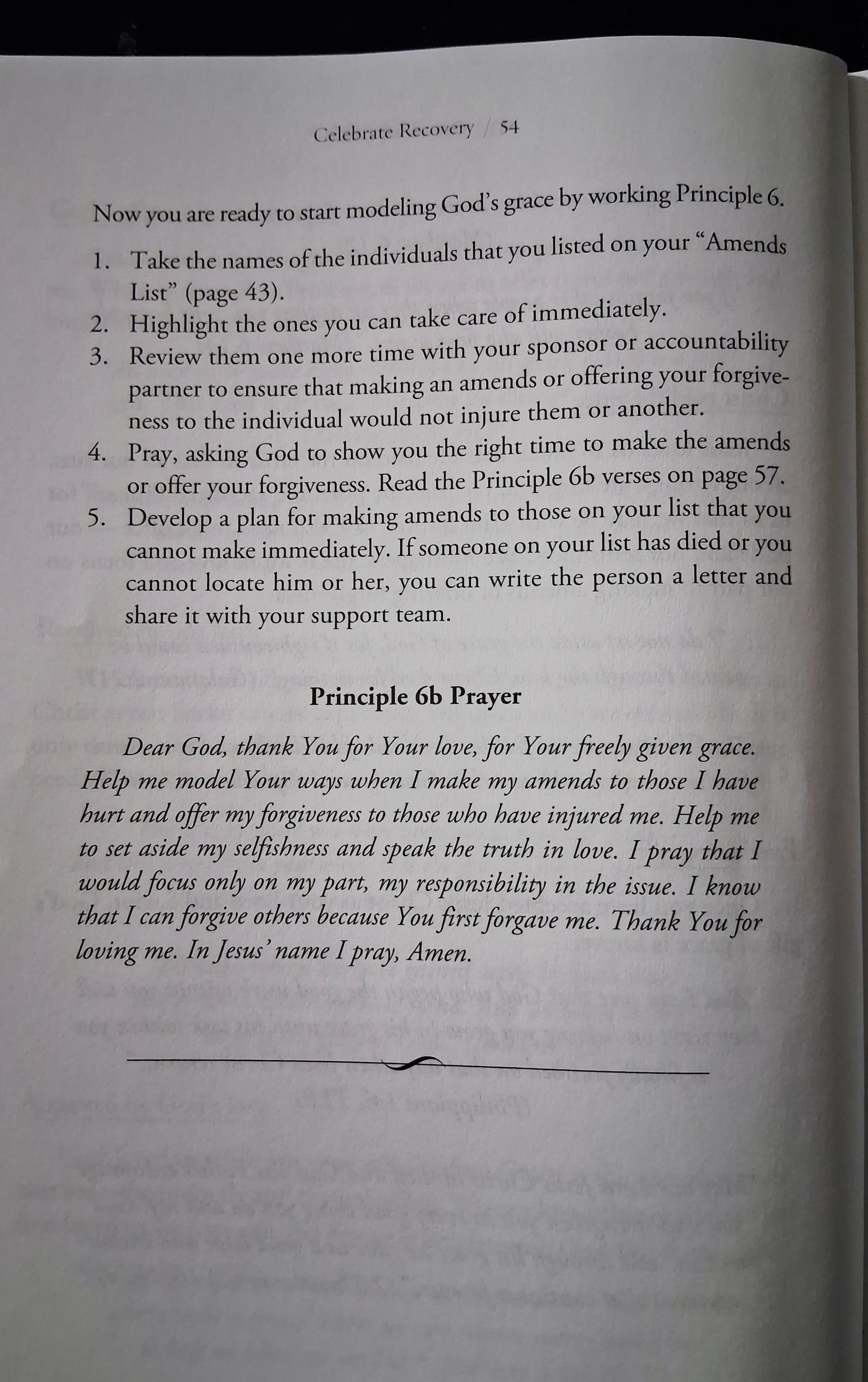 List the names of those to whom you think you owe amends to. Then list those who have hurt you and who you need to forgive. Keep this on your mind for the next 30 days, and see what God, Jesus has revealed in that time as well. Begin praying and taking an honest account over time within our savior Jesus.
