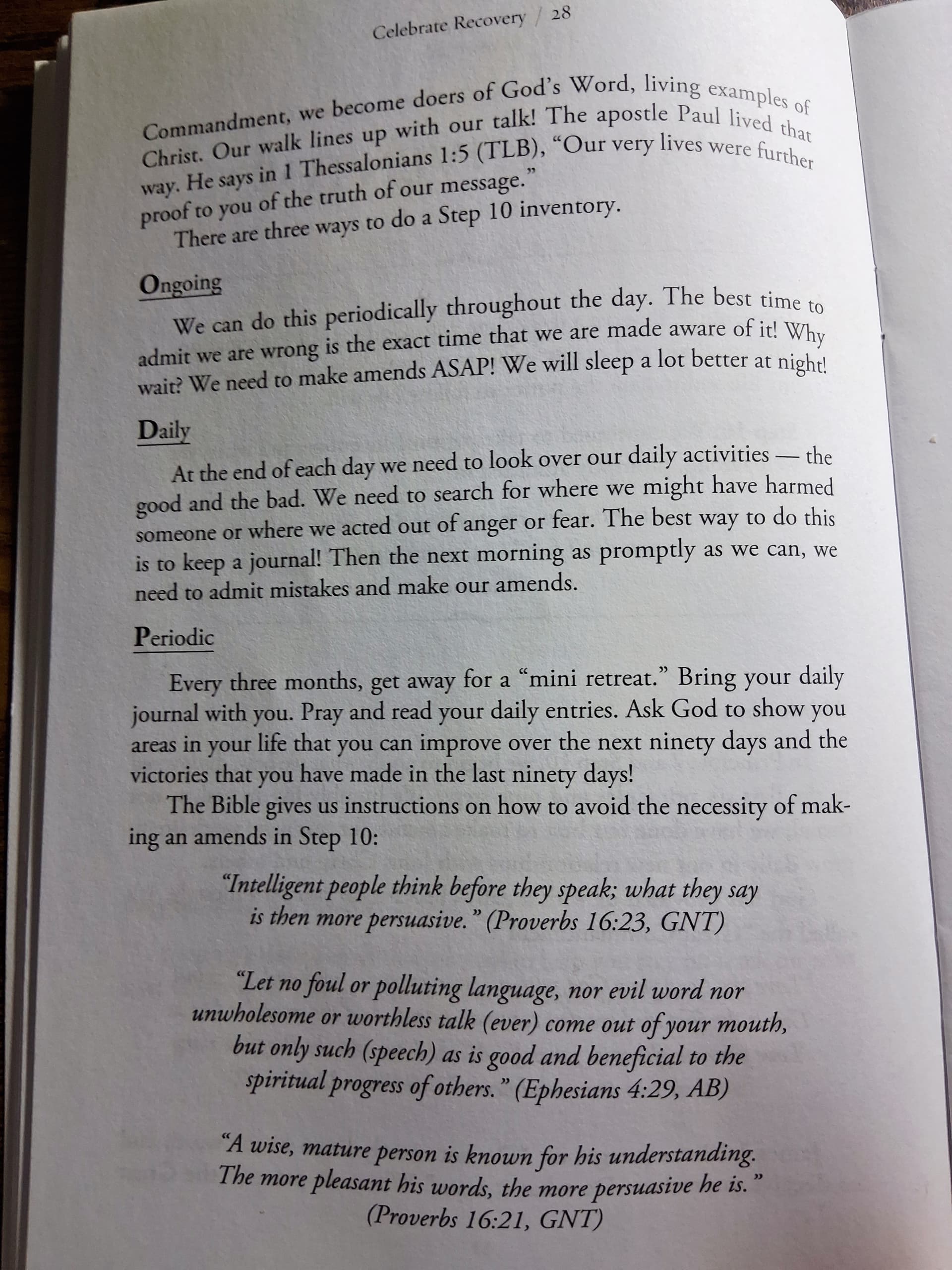 - What are some of the advantages of each of the three types of inventories in your recovery? How can they help you to “be careful that you don’t fall”?