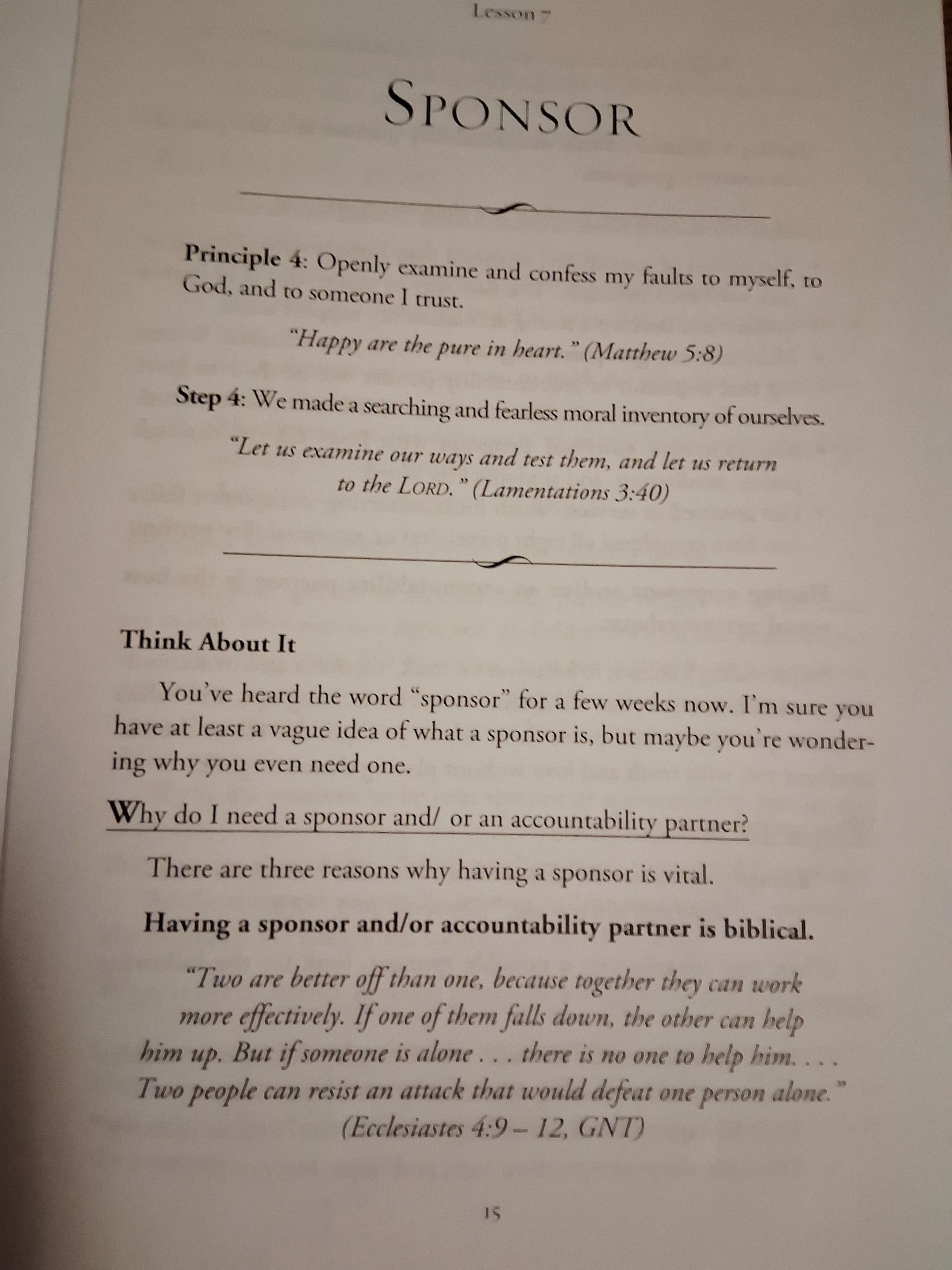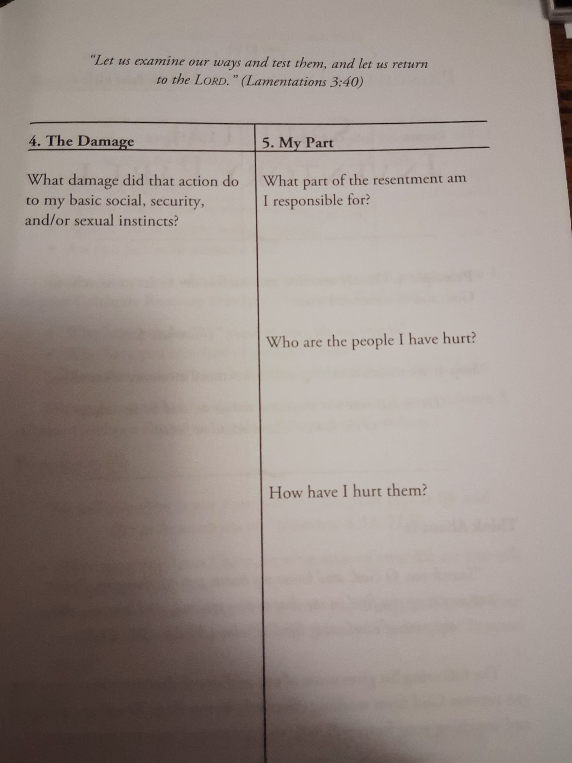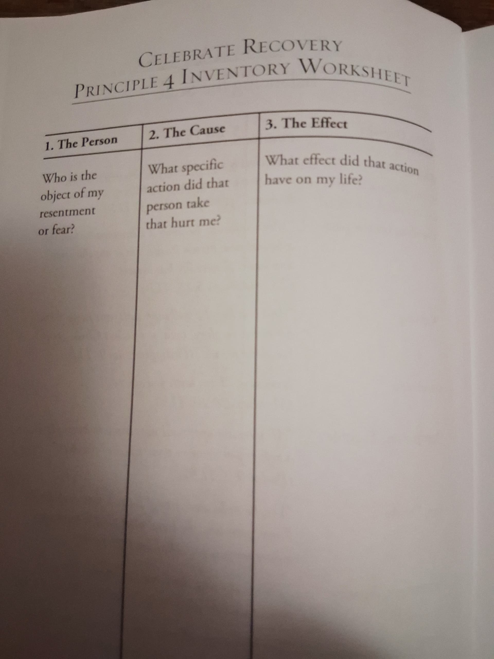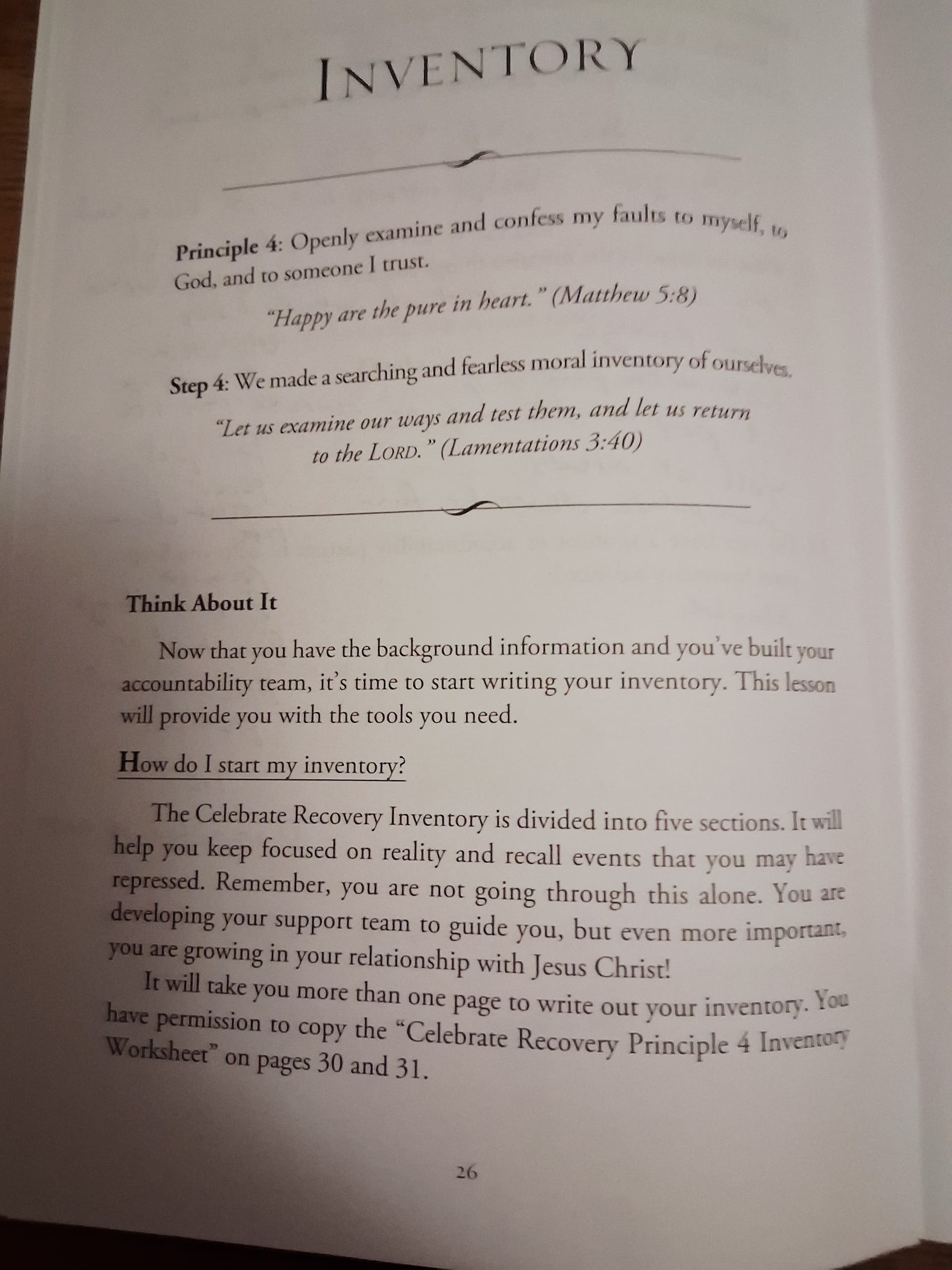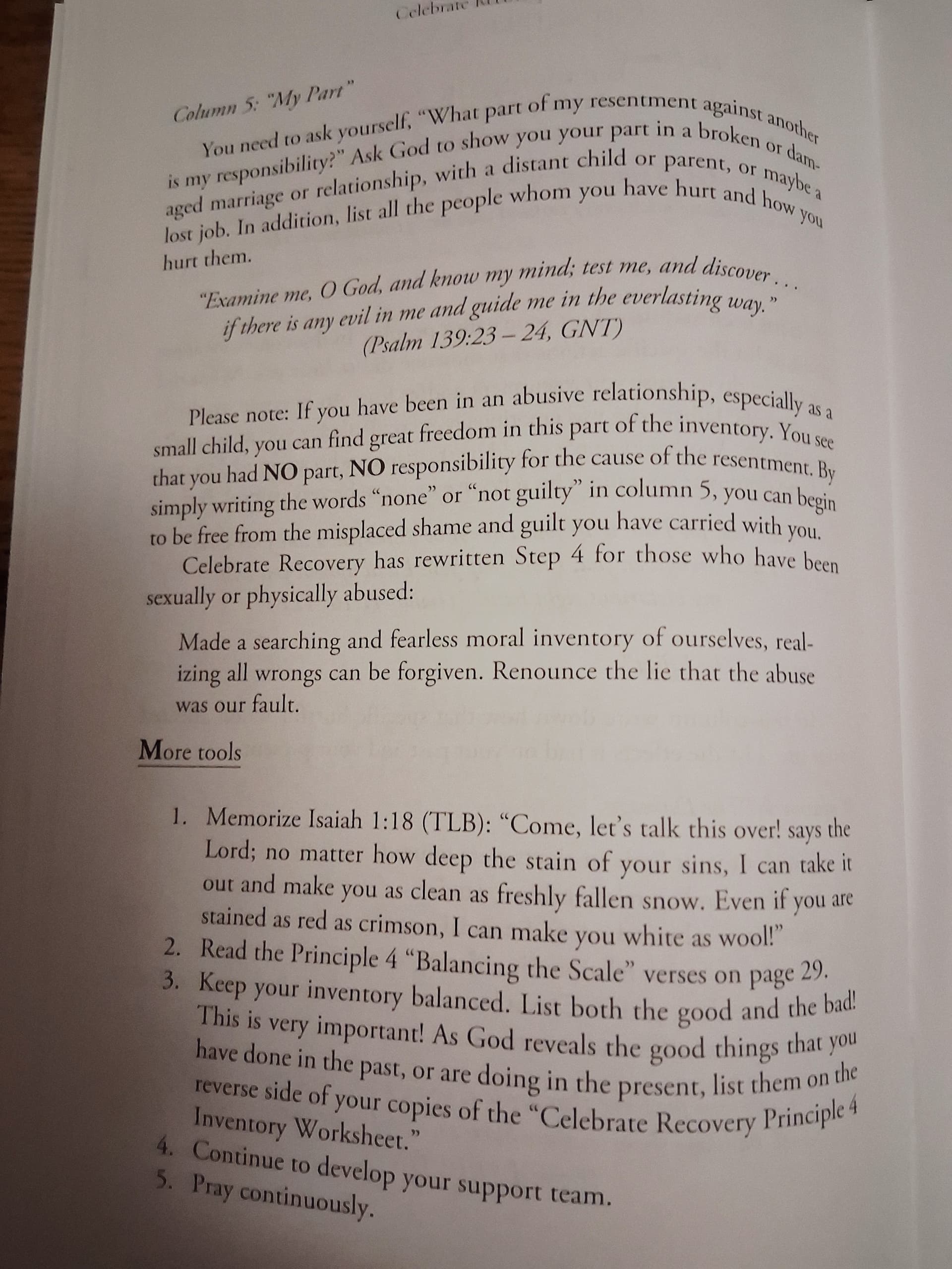 I do need to back track to the previous section but just finished reading the section on Principal 4. I have done a step 4 previously through AA and it was tough. I like tho how ur book speaks on abuse. From what I can remember… the 4th step inventory of AA doesnt speak on abuse specifically. Now I am going to be very vulnerable for a second as I have a question. Potential trigger warning for anyone reading: