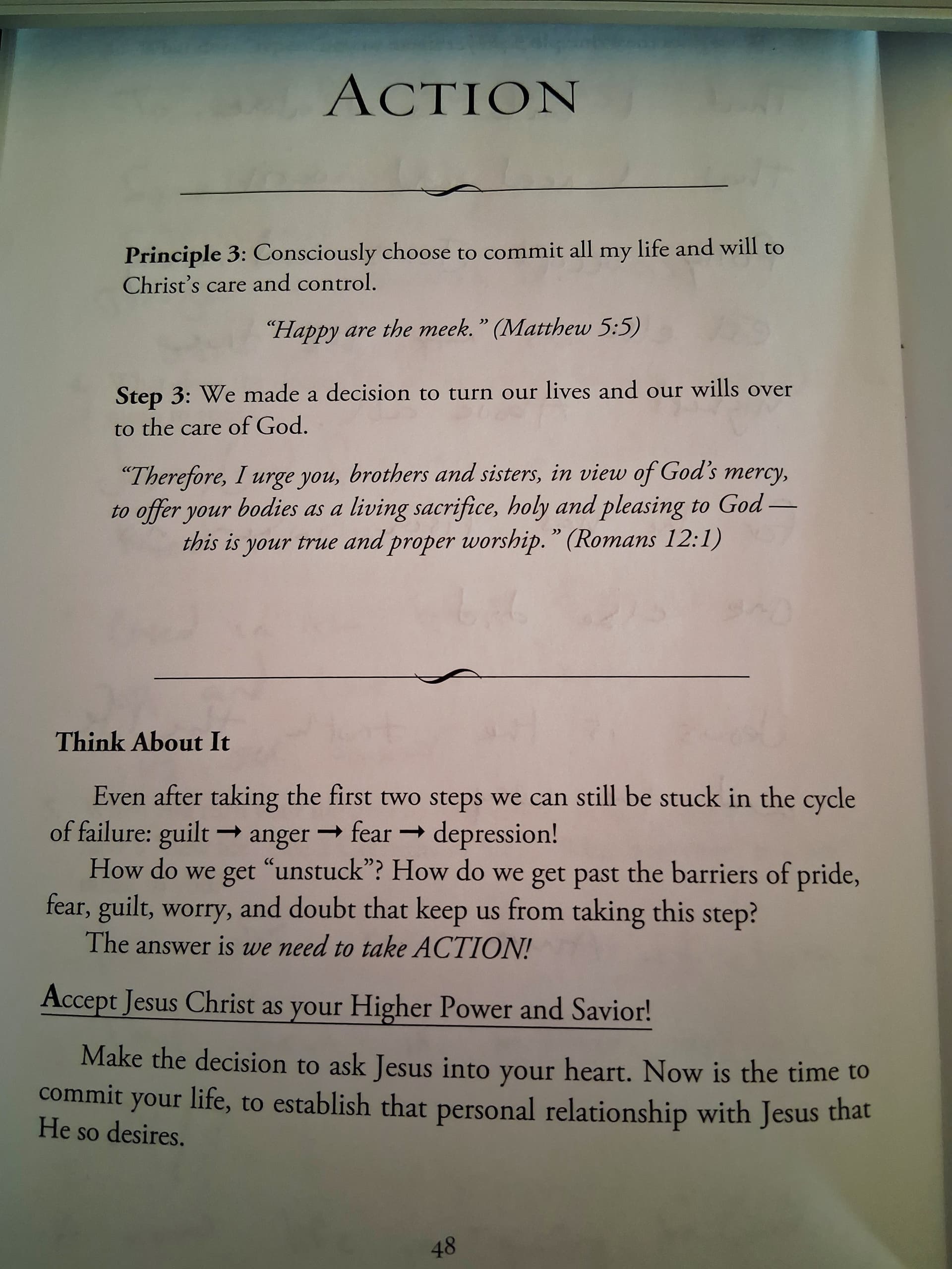 My definition of willpower changed actually whsn reading this chapter. I always thought willpower was what i am able to do on my own. I understand now that will power is the willingness to accept Gods power and direction. I really like that!