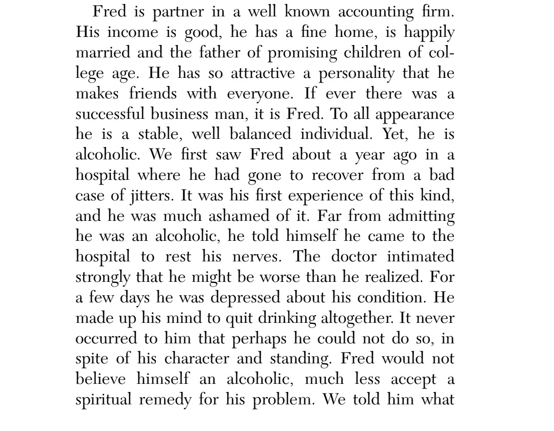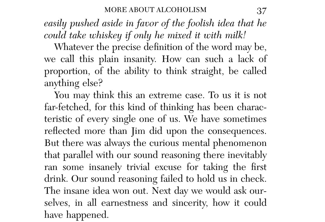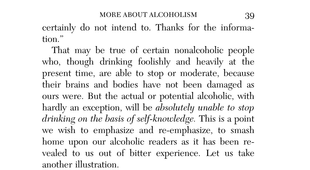 For me, when I read the chapter more about alcholism, it just confirms for me that I am an alcholic and to stay sober I have to take action. There is a solution and a spiritual toolkit laid at our feet in this program, but I have to be willing to take the action being asked of me for results, and continue to do so for lasting results. ![]()