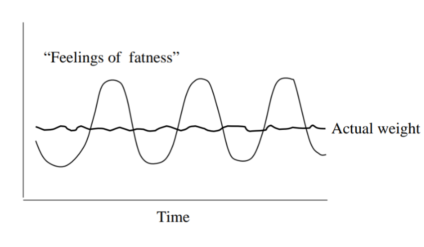 Yesterday was a bit weird. In the morning I had breakfast and then lots of tea due to people visiting me at my mum’s place. That made me feel full and “feeling fat”. Later, I talked about it with my therapist and she shared a chart with me that sometimes we can feel good, sometimes fat but our weight is still the same, it is just a feeling. It can be due to what we ate, bloating, period (in case of women), etc.
