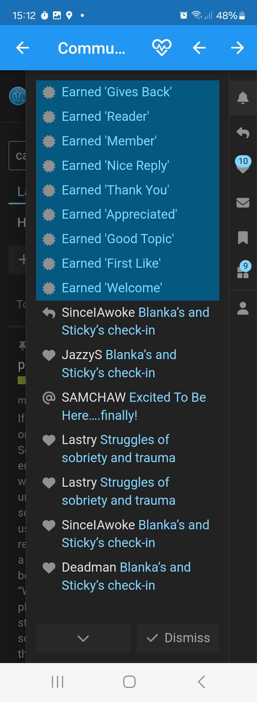 When you join the forum, the functionality available to you is limited. The more you participate, the more you are able to do here. Note that the easiest way to increase your trust level is to read lots, which is also likely to be pretty useful for your sobriety! When you achieve Regular status (Trust Level 3) you get access to the lounge which is a category that is not visible on the main forum.