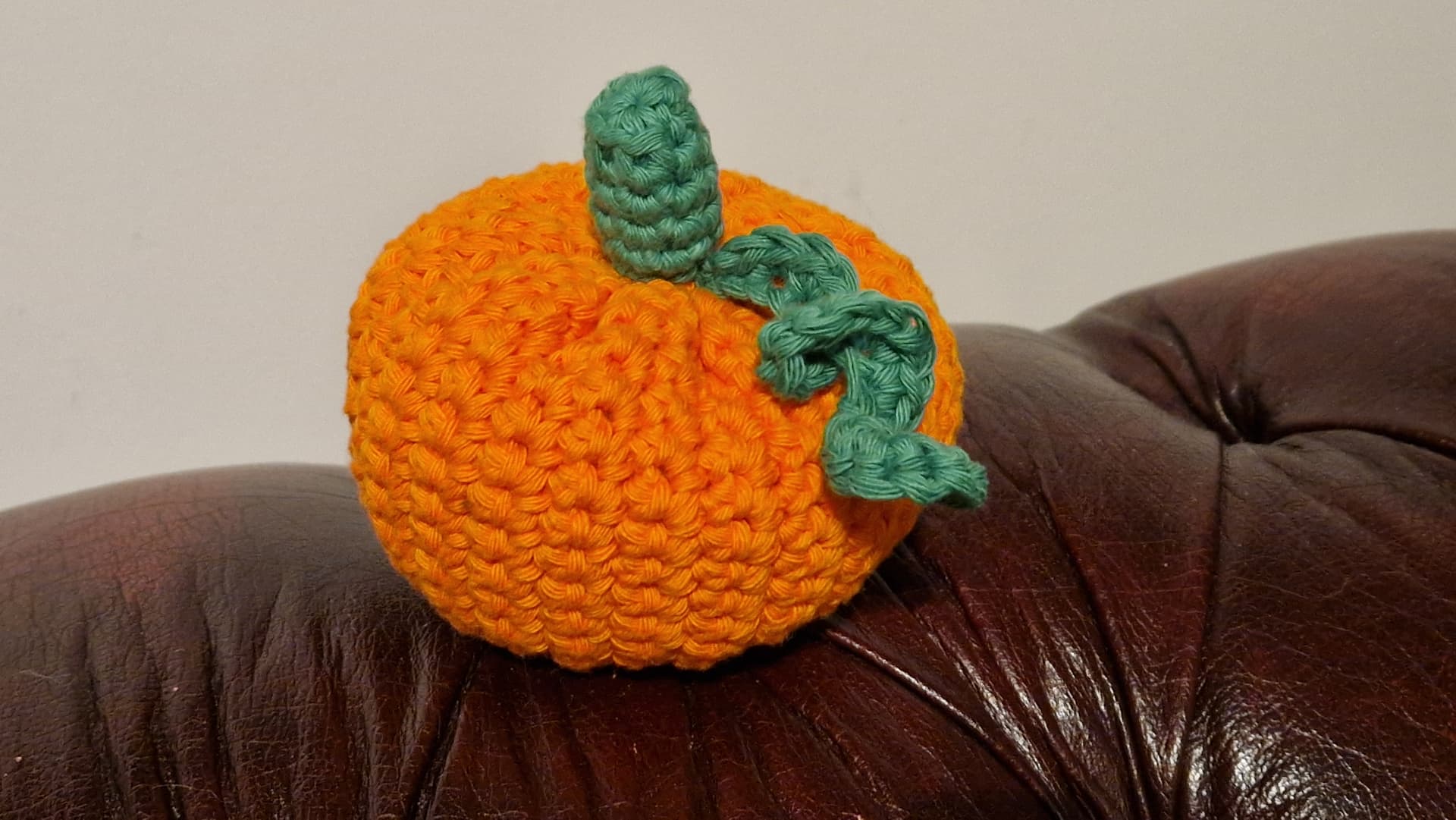 I made it up as I went along, no specific pattern. This makes a grapefruit sized pumpkin made with a 4mm hook.