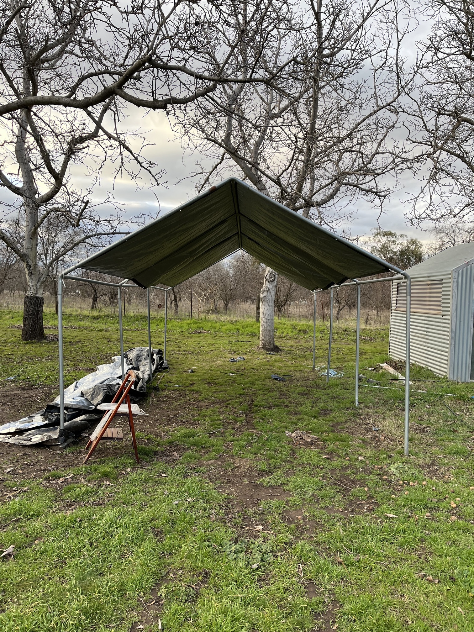 Tarp still on structure I put on all by myself yesterday