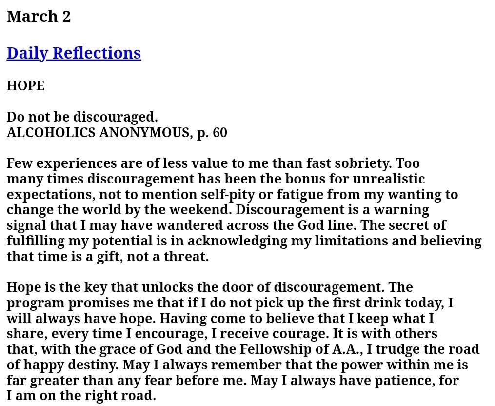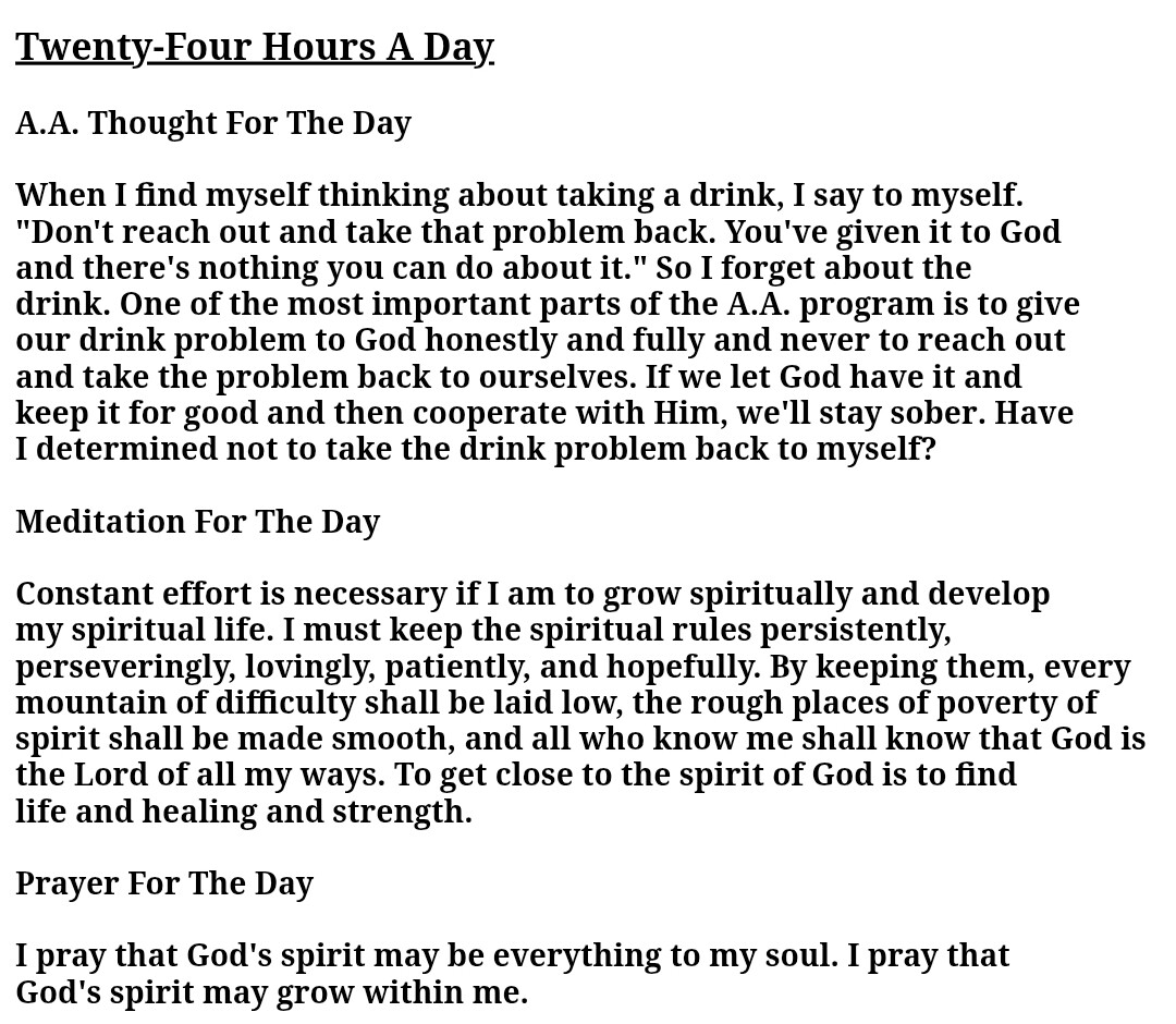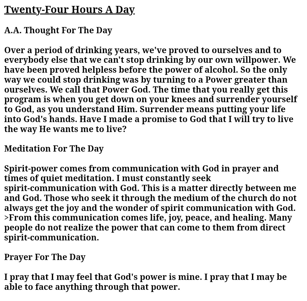 Prayer for the Day: I pray for the courage to believe. I’ll not let doubt into my heart. I can recover. I can give myself totally to this simple program.