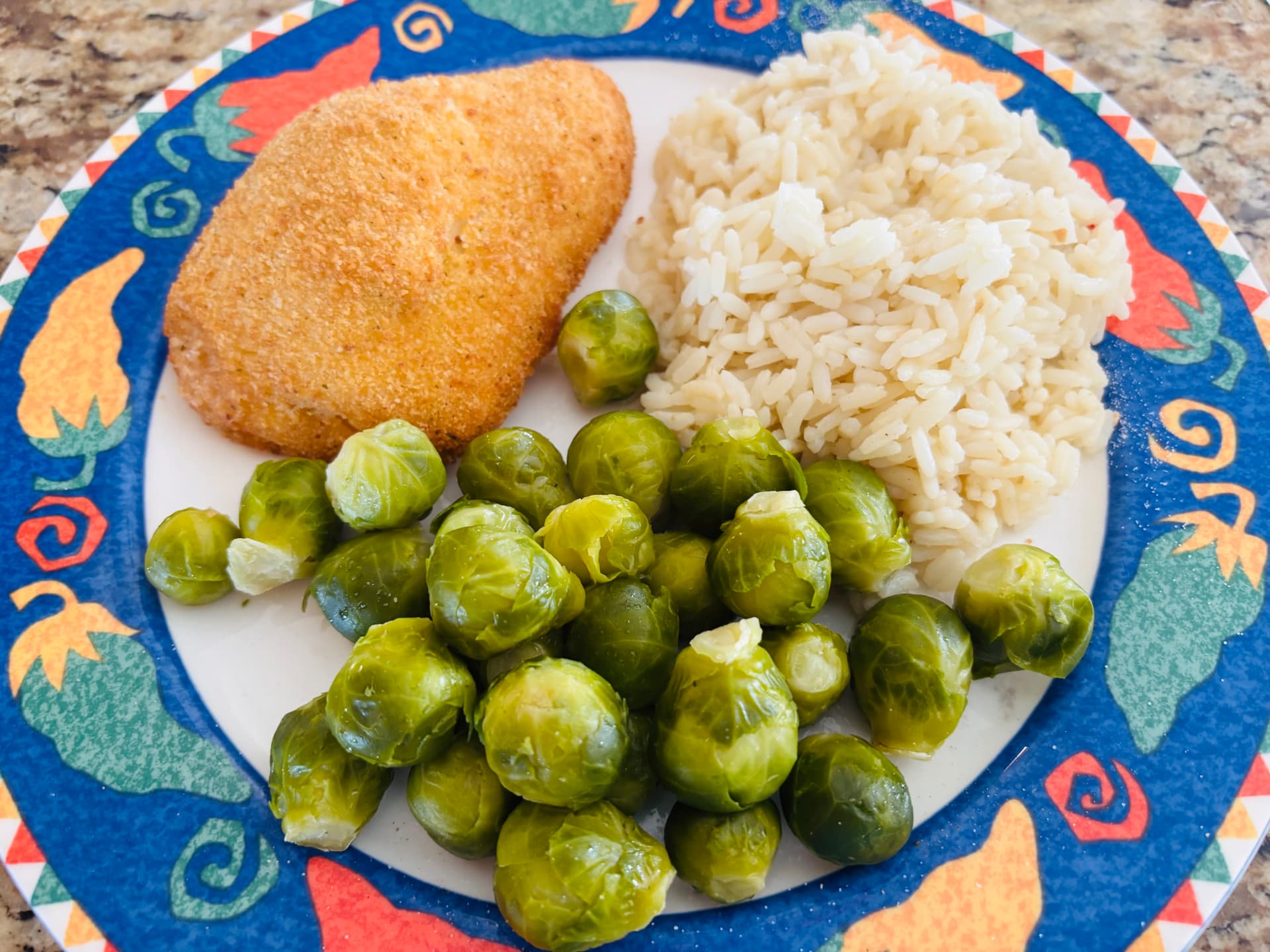 Rushed supper the other night after really busy day called for chicken stuffed with ham & Swiss from the freezer. With some slightly freezer burnt baby Brussels