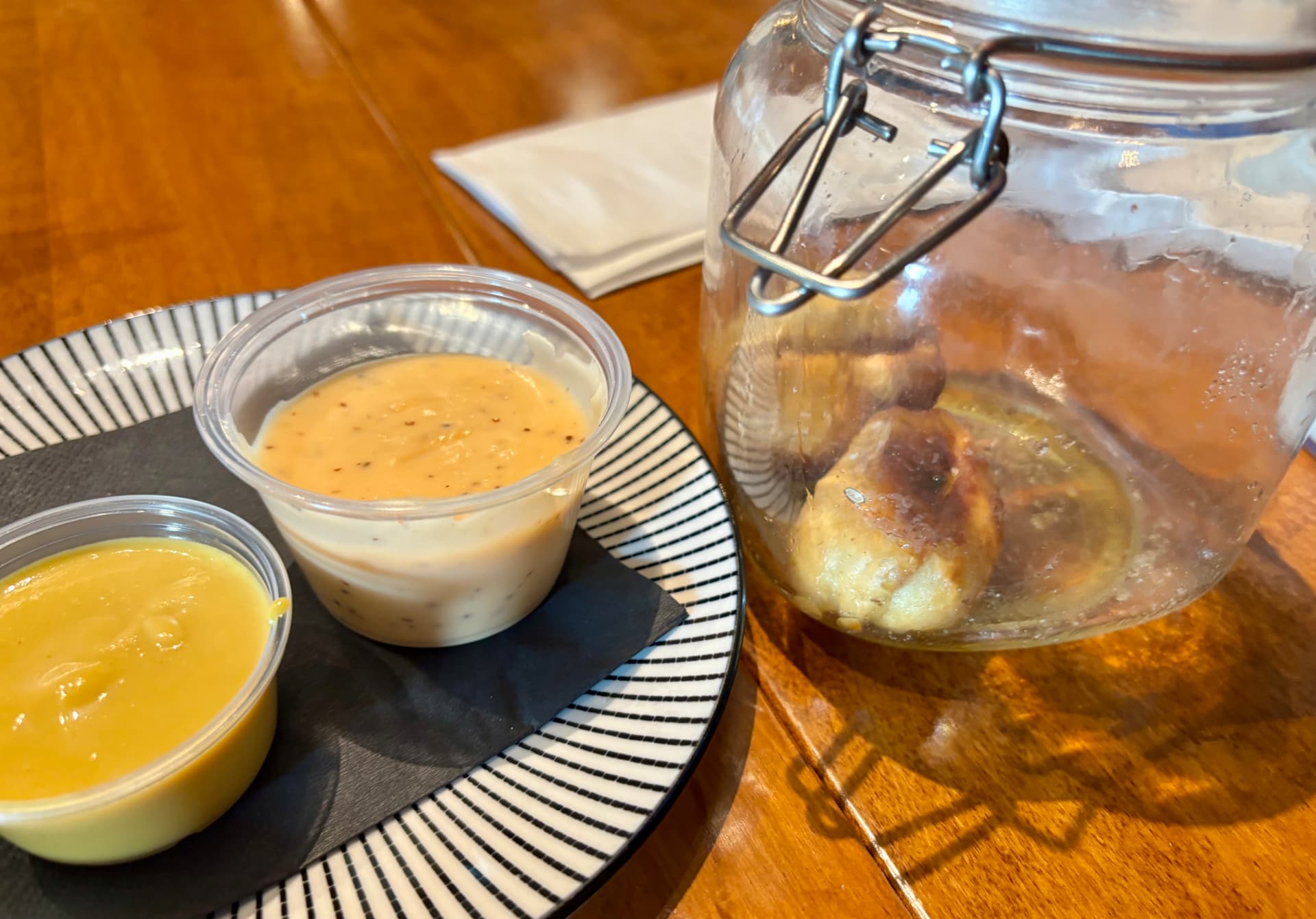 Kiddo had an evening “play date” (or whatever it’s called for his age a hangout?) at schoolmate’s in a nearby town to watch a movie outside.. so we stopped for supper before. It was noisy as Jay’s game was on and there were lots of hardcore fans