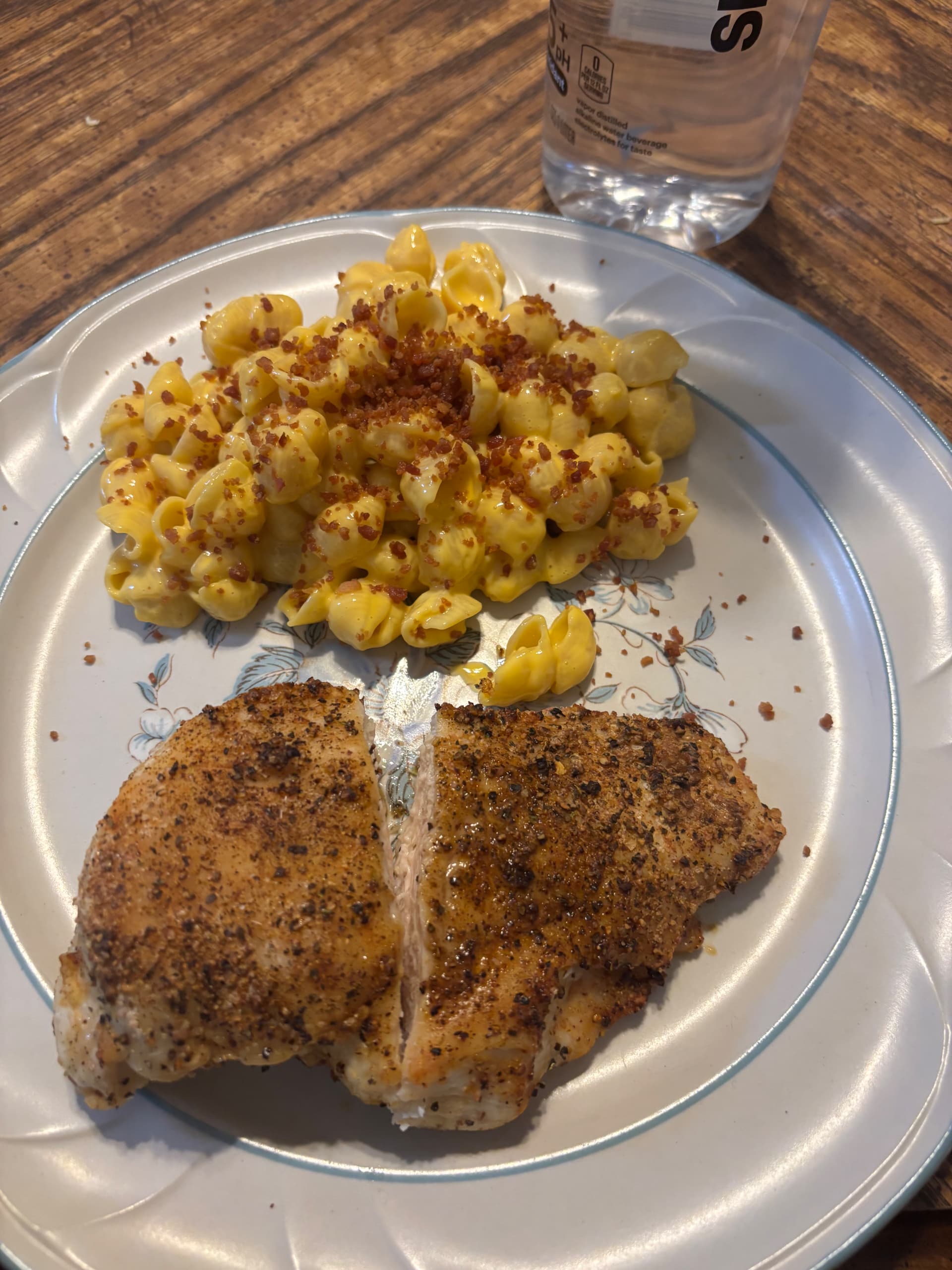 Sundried tomato pesto salmon for me. Was craving salmon all week. Started with soft pretzels which he loves (remembered to take pic after most were eaten)