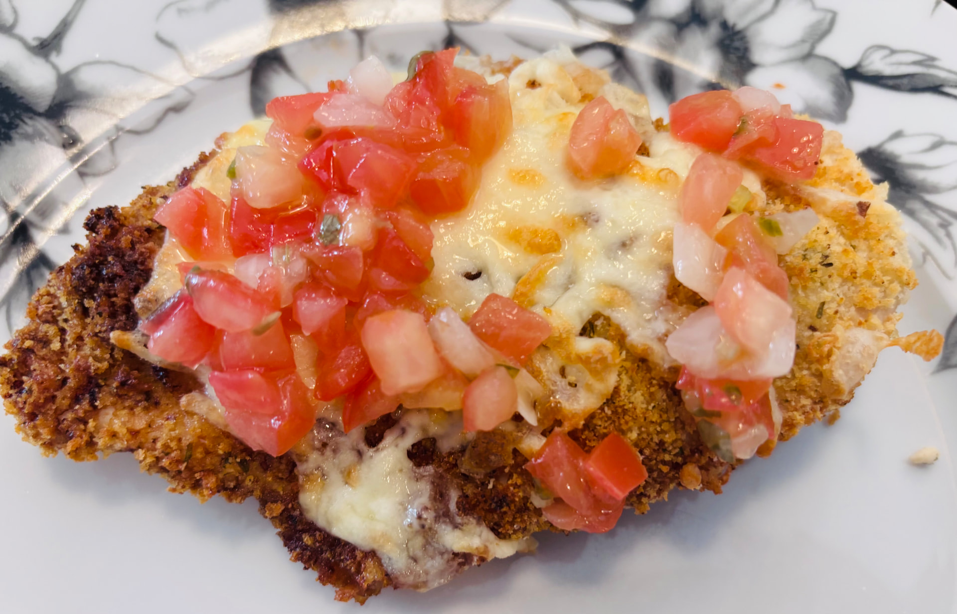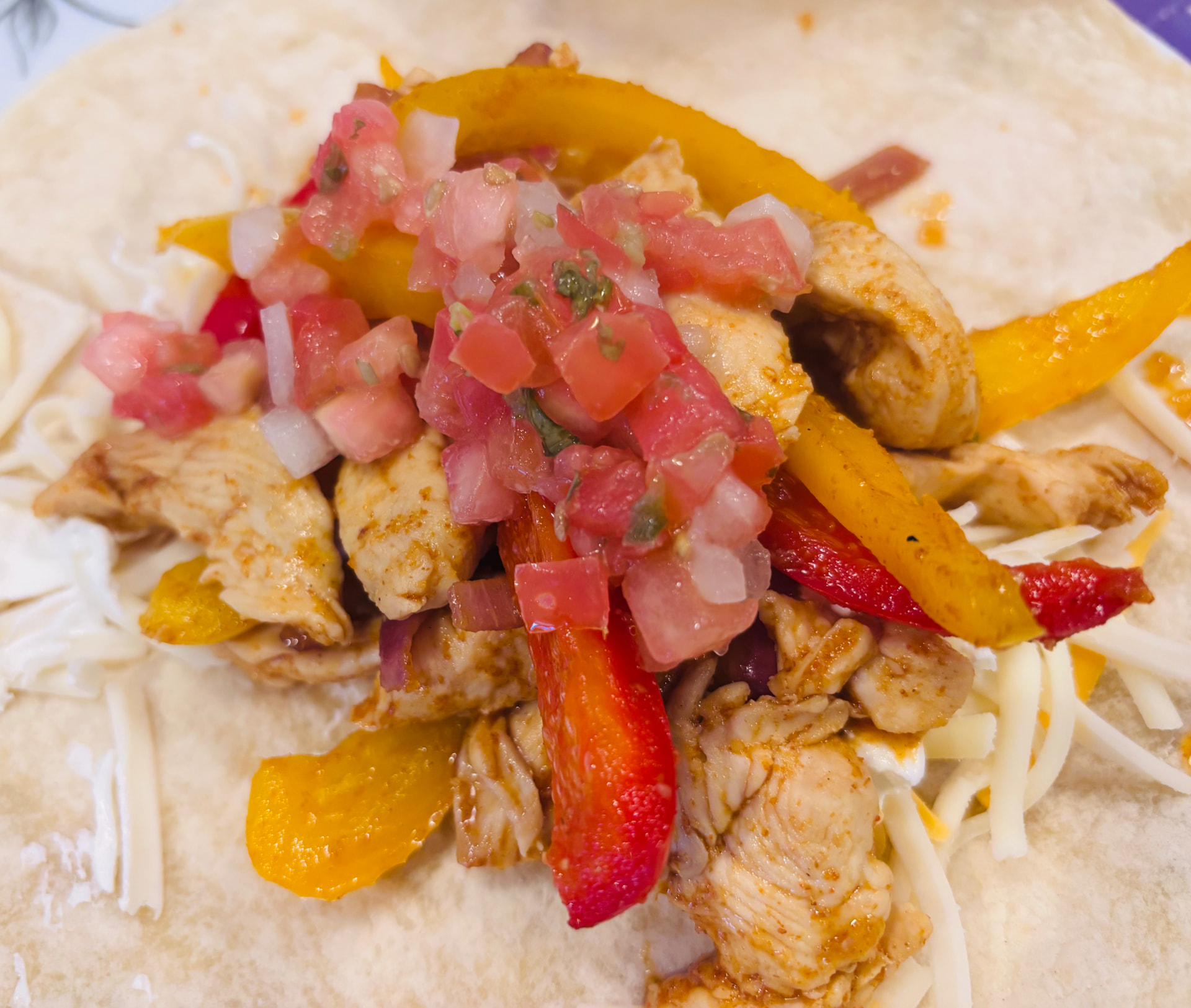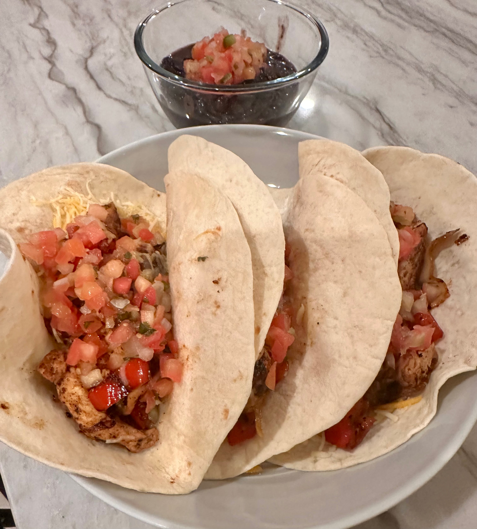 Made some panko chicken breast air fryer and at the end topped with some shredded cheese. Added some pico del gallo. I wish I’d had time to marinate the chicken first. Next time!