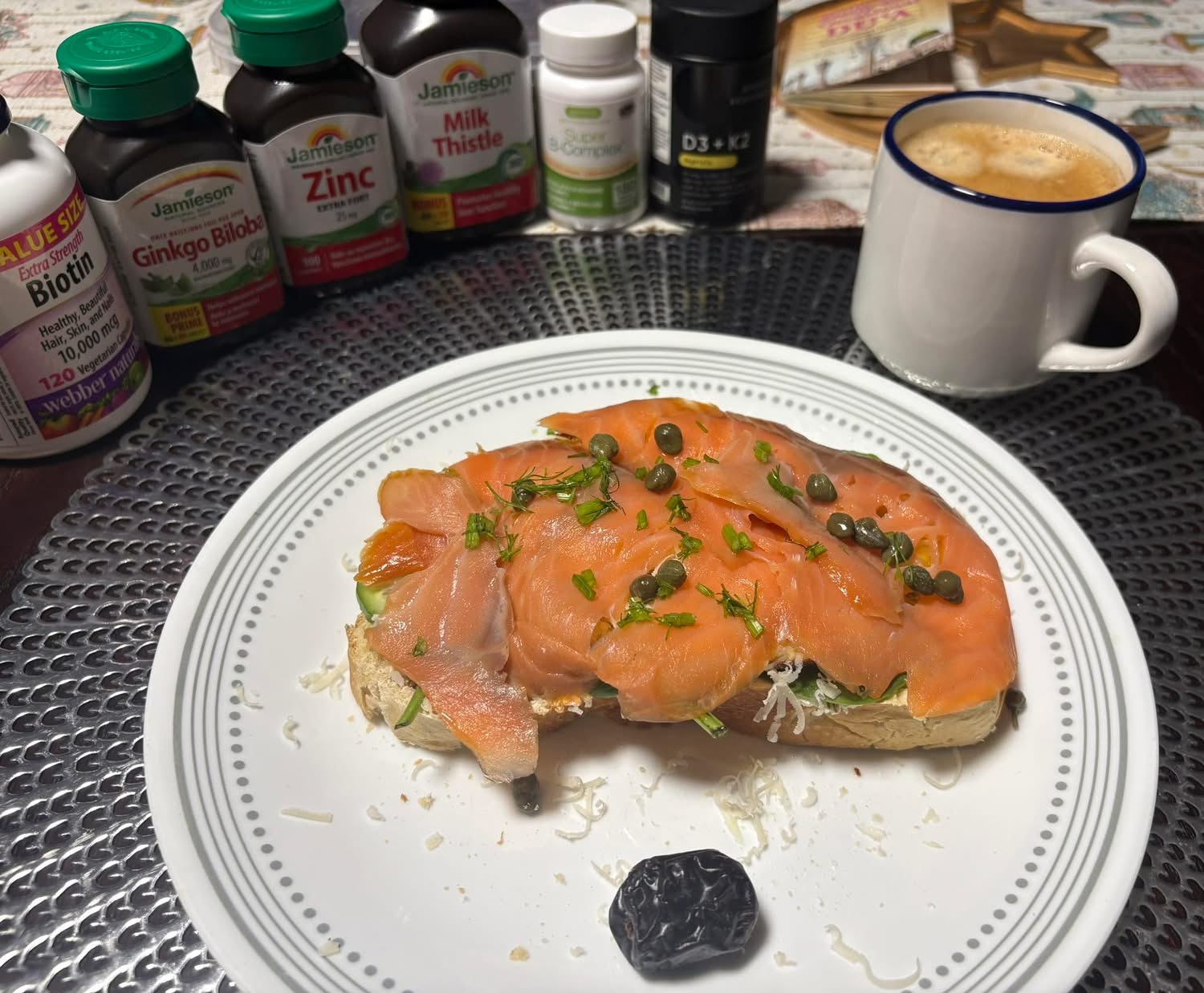 Ramadan Day 15 Breakfast - Ajwa Date, Sourdough Bread With Herb & Garlic Cream Cheese. Spinach, Cucumbers, Yellow Heirloom Tomatoes, Basted Egg, Smoked Salmon, Capers & Fennel.