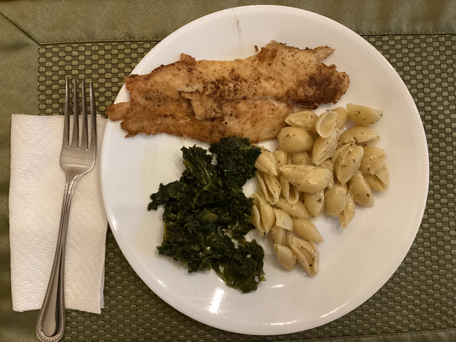 Fish, kale, pasta