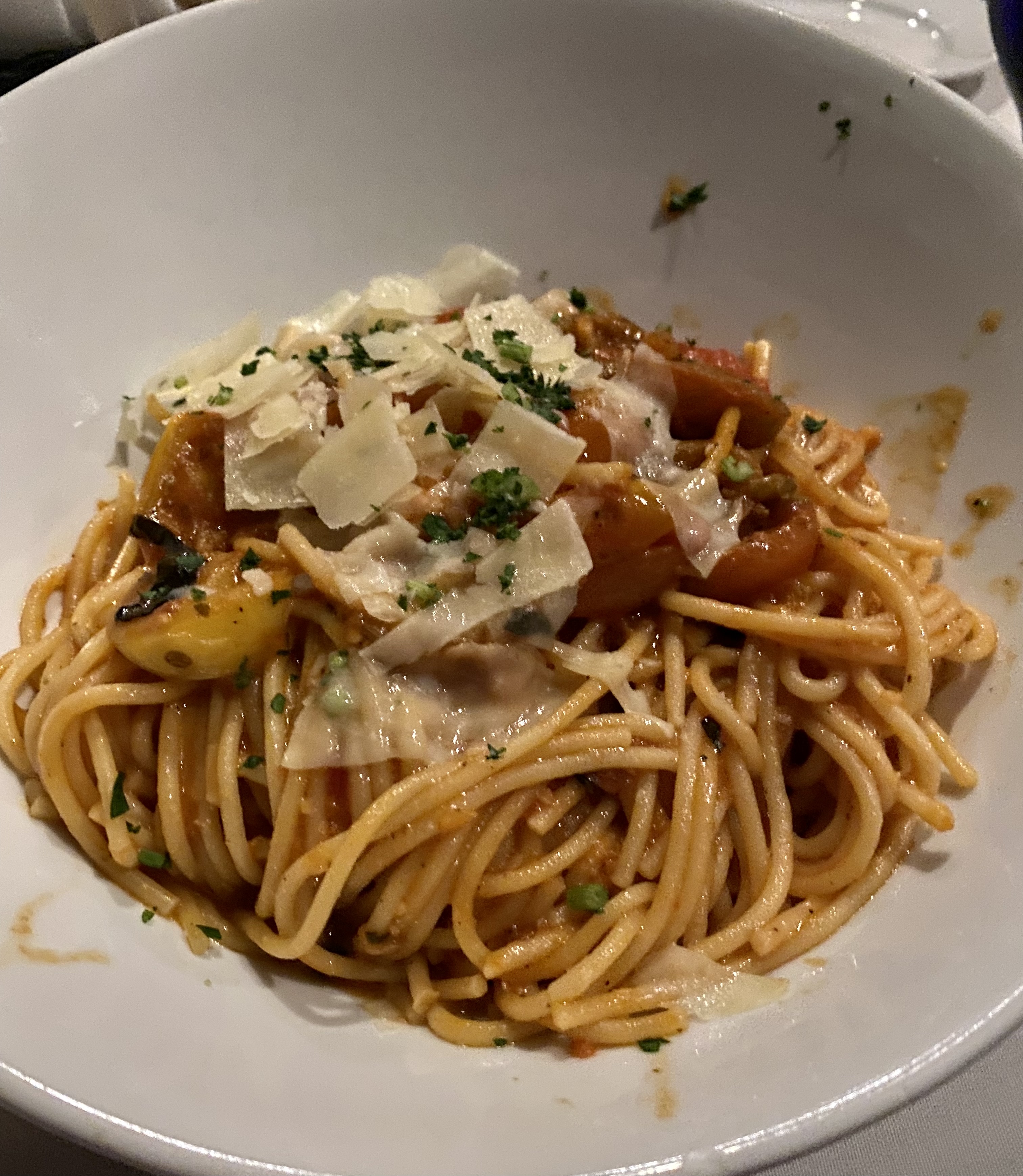 shaved garlic + tomato confit + e.v.o.o. + shaved grana