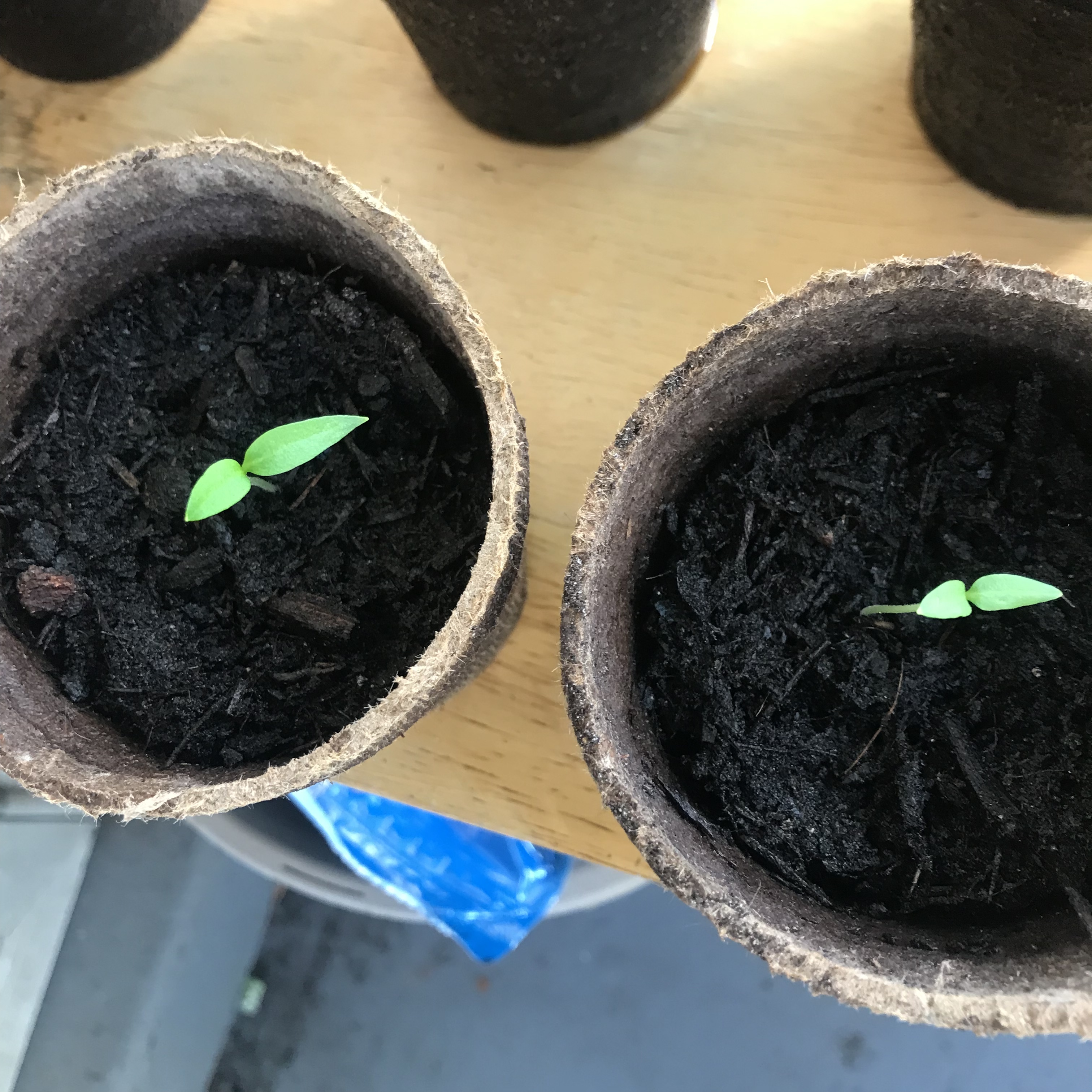 My okra is doing good but I think it’s getting too tall for the small little seed pots and the roots probably need more room to grow so I’m going to have to figure out where I’m going to put them. I’ve been slacking but I really need to get this raised garden bed built or started. I also need to go to the library and do some research on the okra because I don’t know if I have to clip anything or really do anything right now. I’m pretty sure they produce some pretty cool flowers but as far as being edible I don’t know what’s going to happen with the okra. The peppers are just starting to come up. Honestly when I first planted the seeds my only goal was for them to sprout and then I feel like that would be success but now it’s past that so I’m going to try to keep them alive. I read that normally you can tell how big of a pot you need to have based on the perimeter of the plant and that’s how big the roots spread out but with this okra it’s just small two leaves and very tall so I don’t really know what’s going on with the roots and it’s hard to tell. Like if you had a plant growing and the leaves were spreading out and you did a circle that perimeter would be the size of the roots or how far they spread out but it’s hard to tell with the okra. Also I think most people are not starting single seeds in small pots they are harvesting in large areas.. I’m just a beginner. This is trial and error combined with research