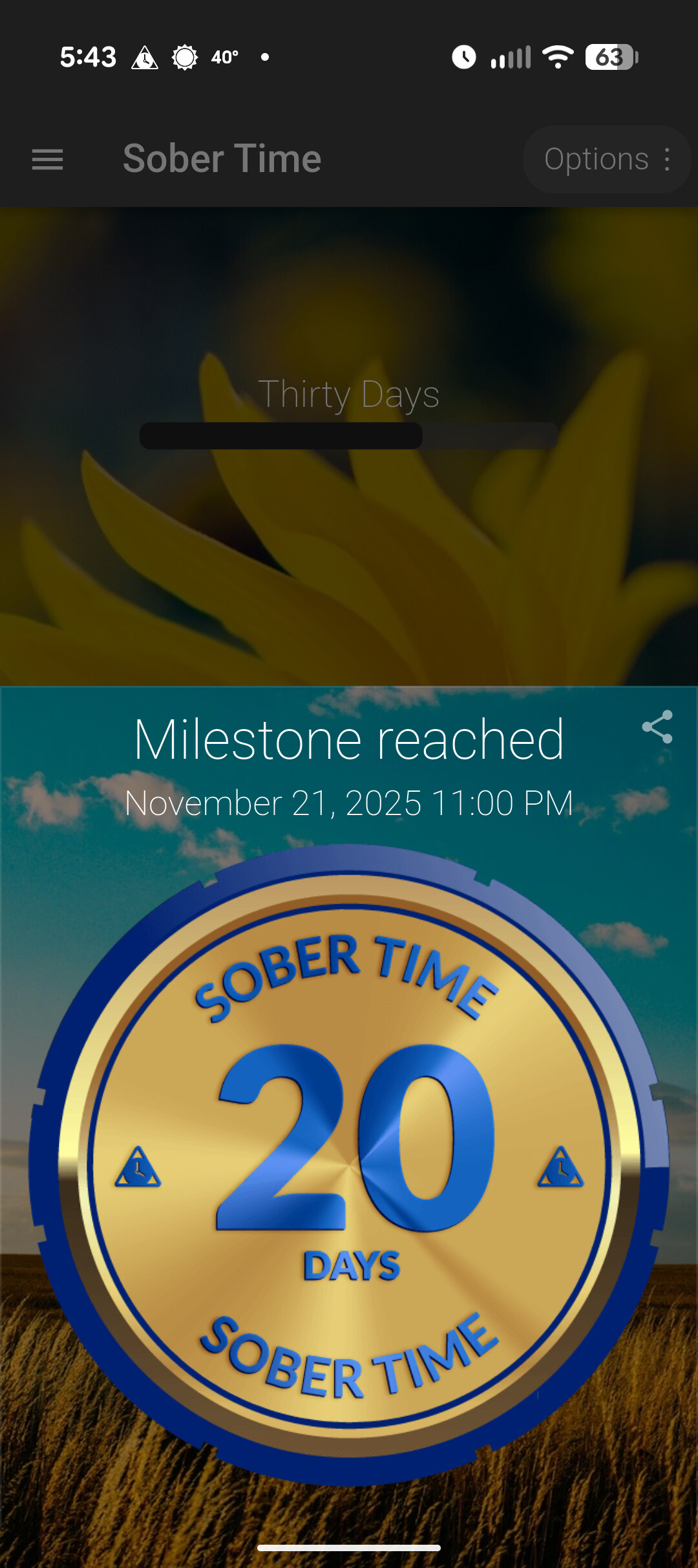 Congratulations on your 20 days!! That is great work!! Keep going!! ![]()