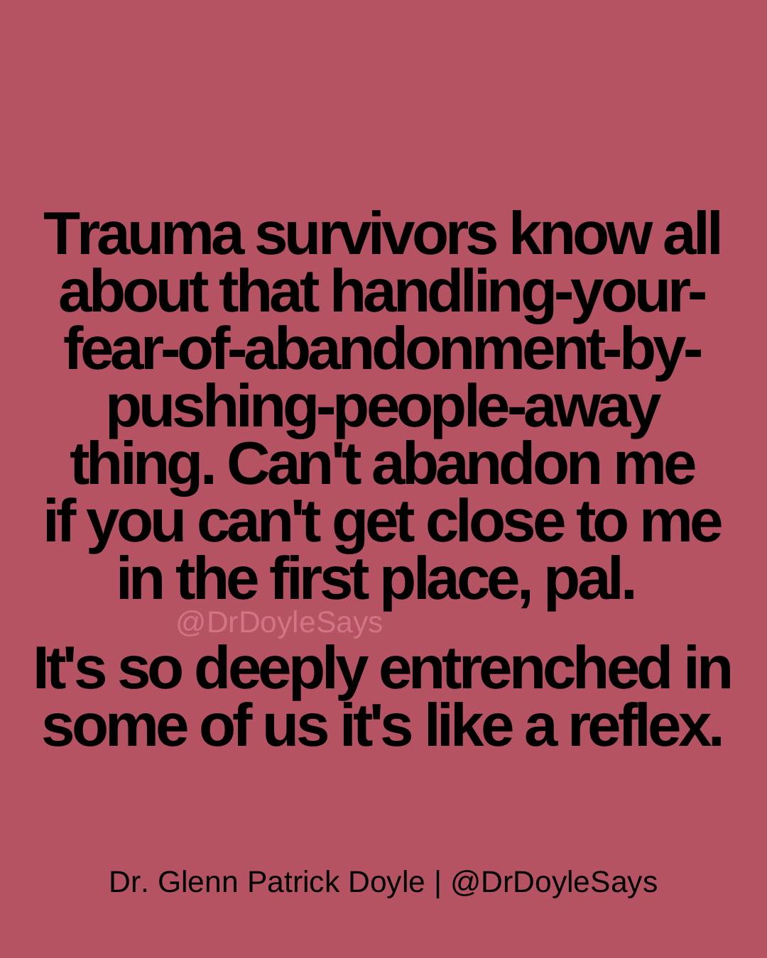 Not just fear of abandonment by the way. Fear of being hurt again in all the ways we were hurt before. And often rightly so. The predators know how to pick out their prey. But we learn how to recognize the ones that want to prey on us. And we can learn to trust some folks, the one in a thousand that we can trust and truly connect with. I can’t do it alone no more. The opposite of addiction is connection.