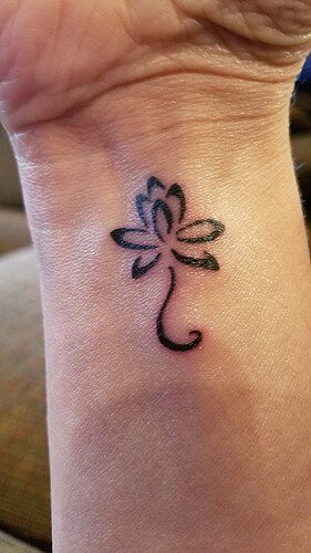 I just had a little lotus flower tattooed on my left index finger. The lotus flower symbolizes rising from a dark place into beauty and rebirth…which to me is exactly what recovery is. I’m getting the word unconquered on my wrist next. And scripture Phillipines 4:13 across my right upper chest just under my collar bone.