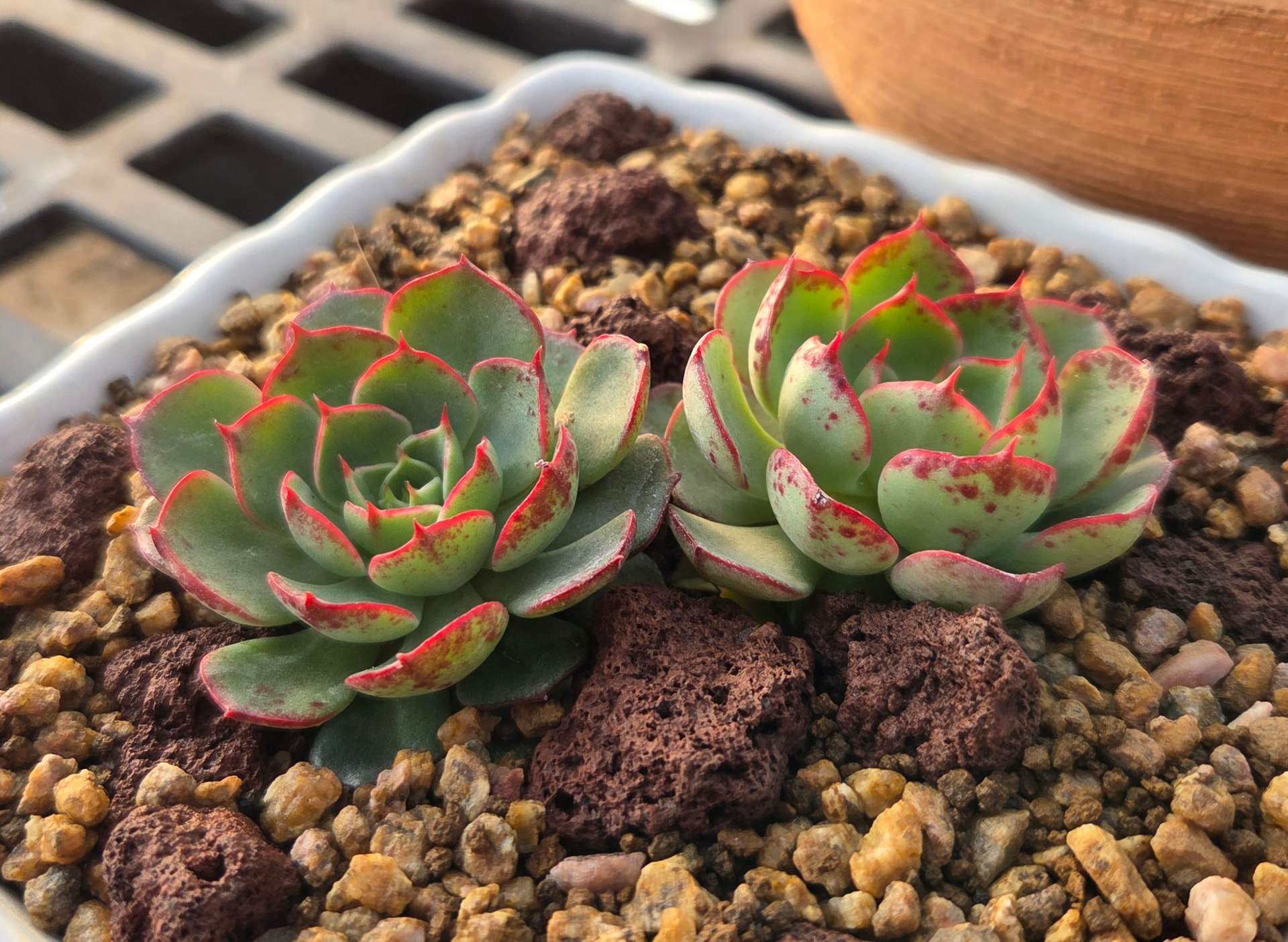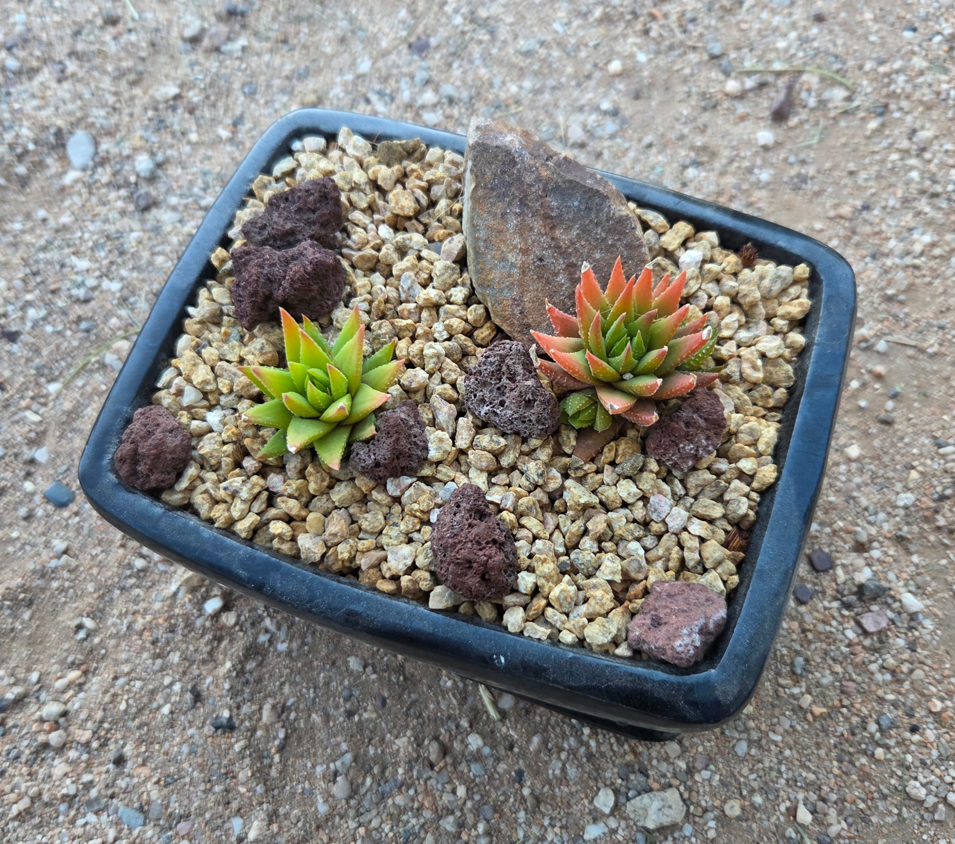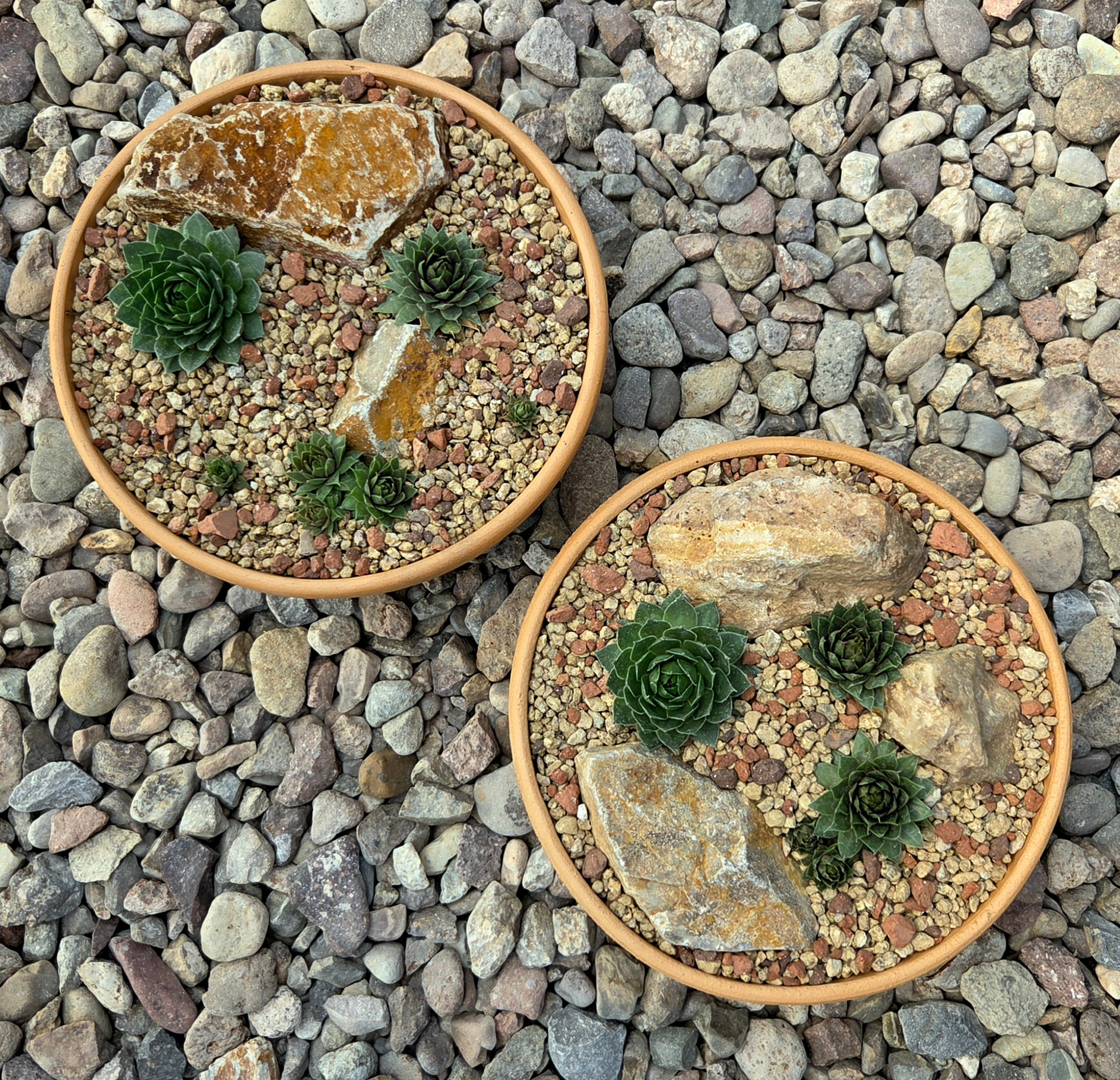 Made another sempervivum arrangement similar to the one from last weekend (bottom right and top left, respectively). Strongly considering keeping one for myself. We’ll see.