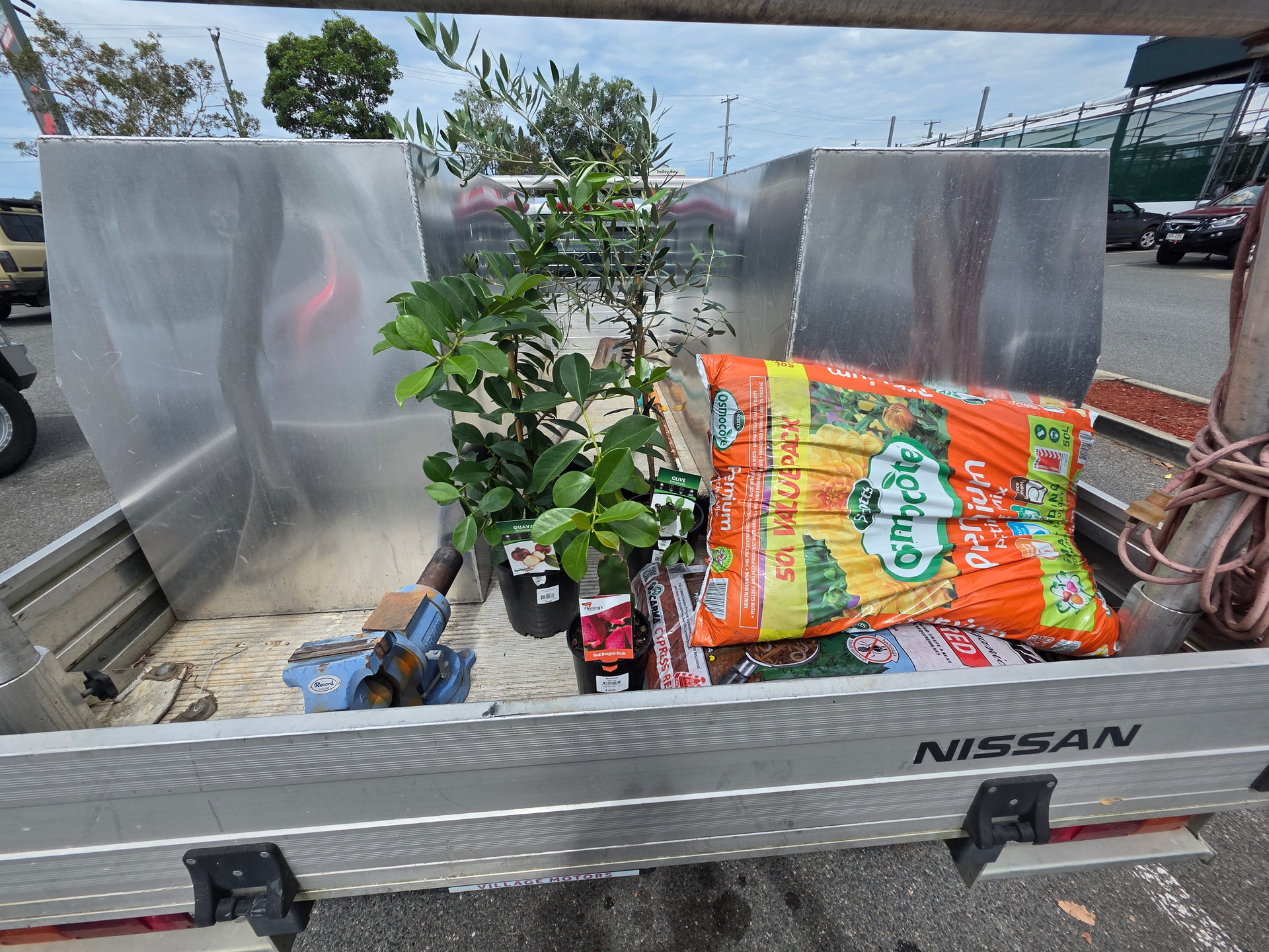 Added a few fruit trees to my backyard today. A strawberry Guava, a dragon fruit and some sort of olive tree.