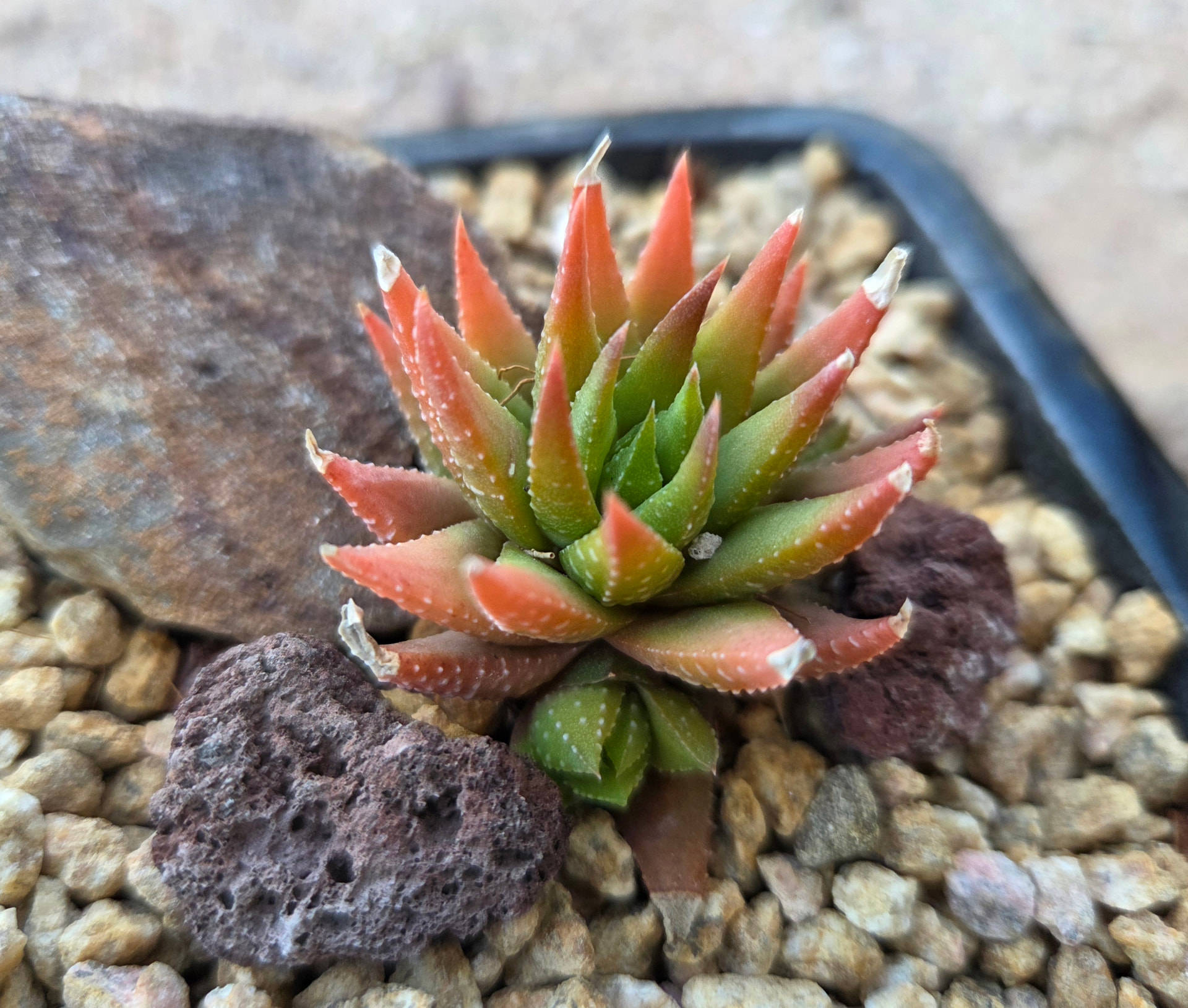The tips are dried out/dead. That was there when I got it 3 months ago or so. Not uncommon for haworthia/aloe, especially when small, and even more so with the sun and heat being so intense here. The tips get dehydrated much faster than the rest of the plant.