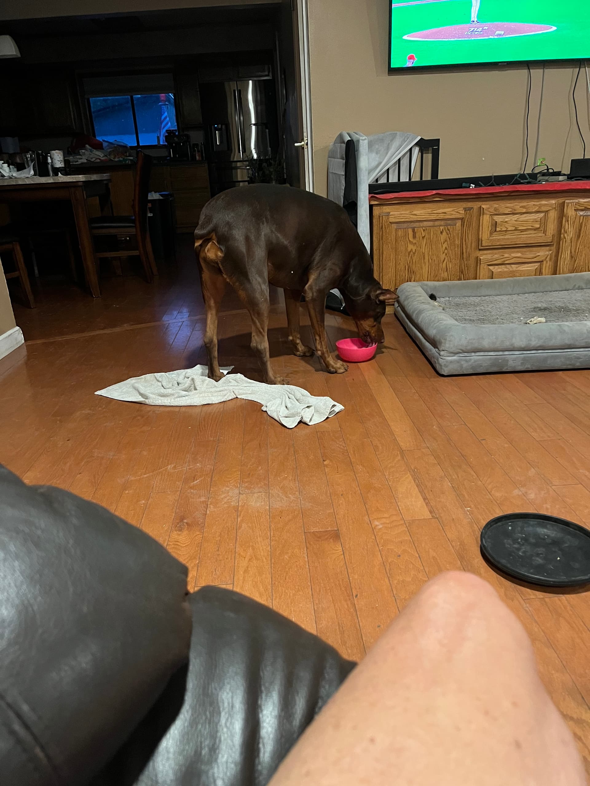 Betty has been fighting with this squirrel that lives in our tree. She was looking for him/her this morning. ![]()