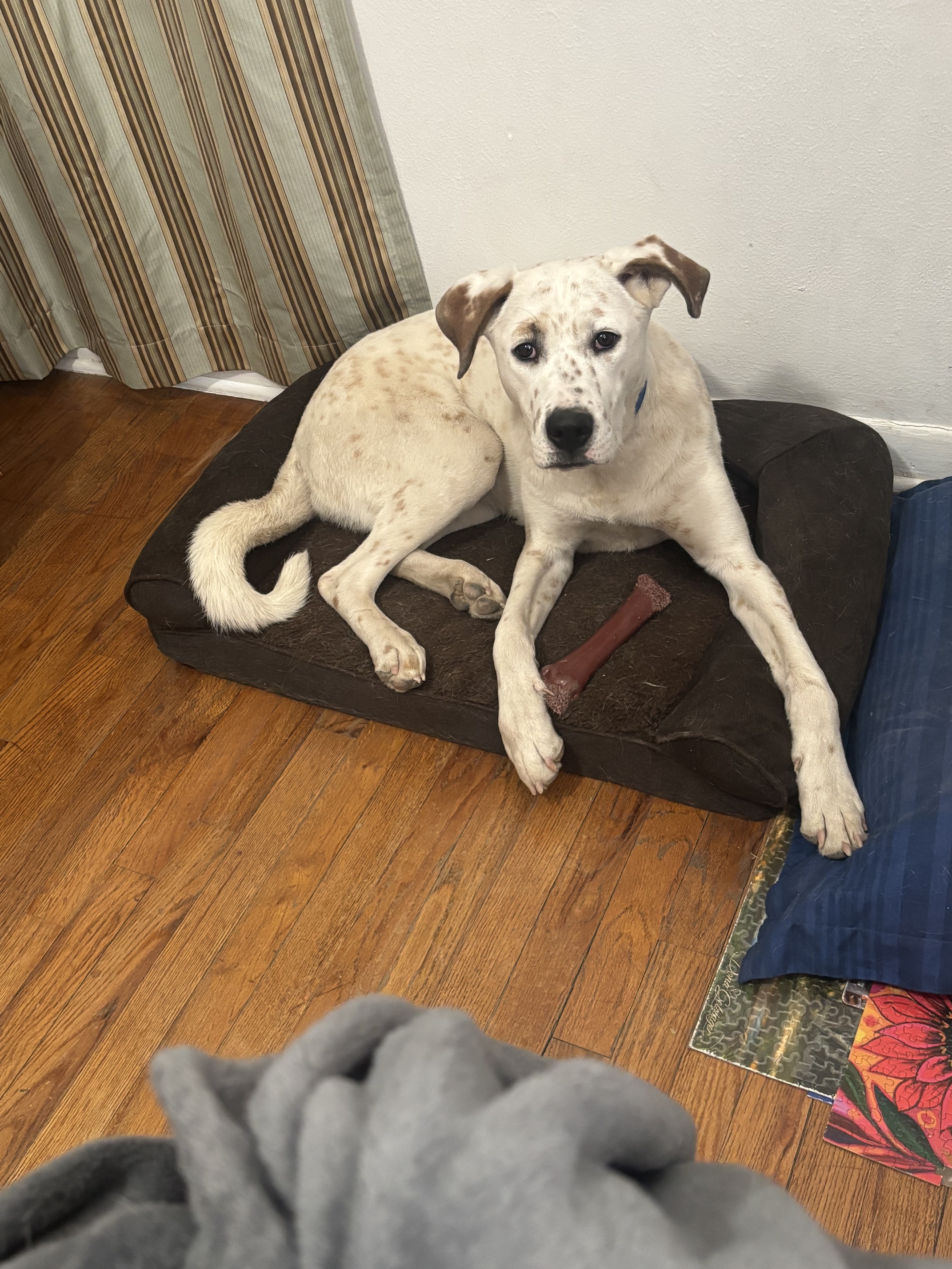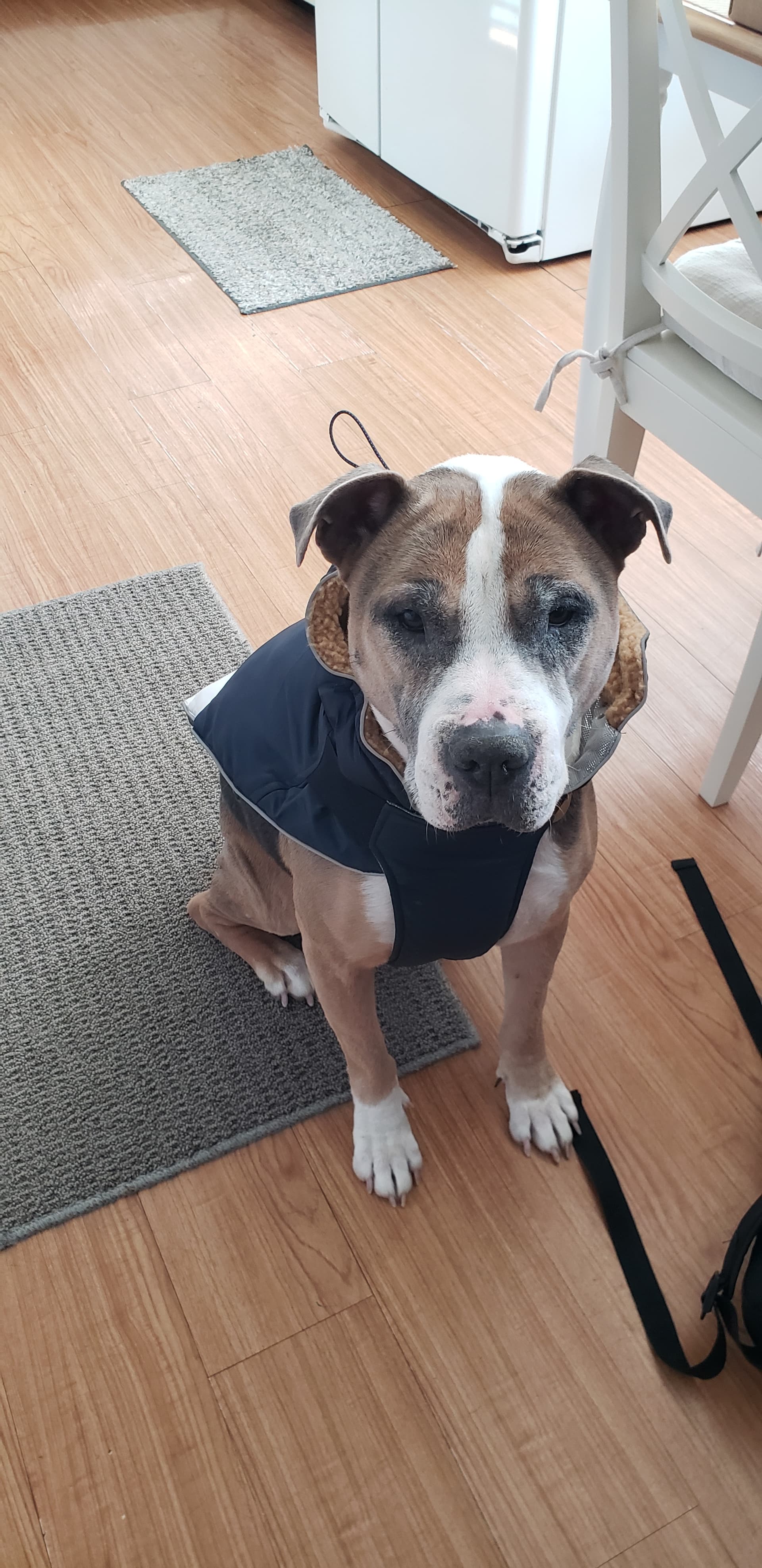 At least she put her coat on nice. Mine is mad because his original coat broke so we got him another one and he refuses to wear it now (and he’s a pittie so he is a freeze baby)