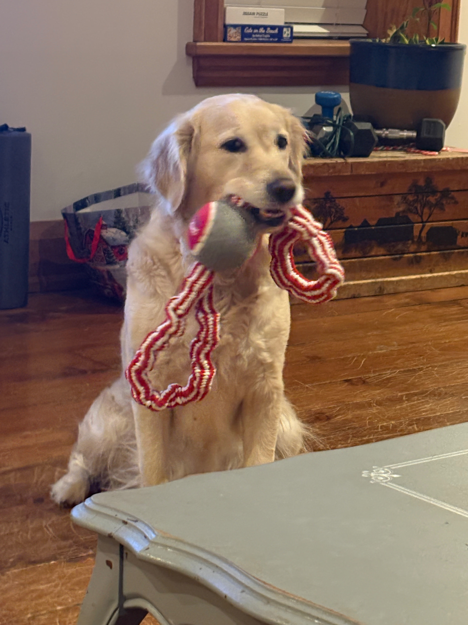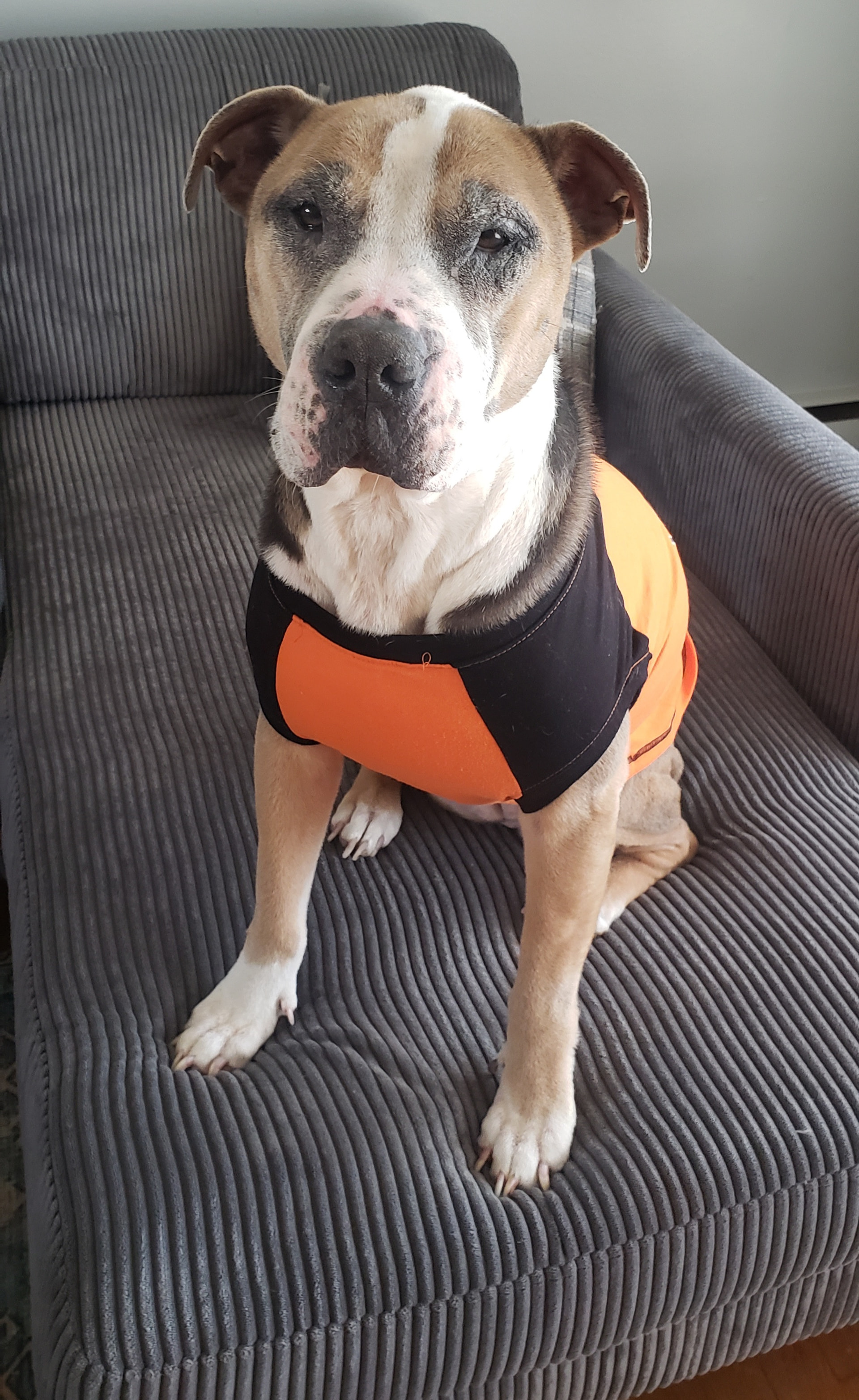 And since I don’t trust leaving Betty outside as she is notorious for rolling in the grass, I put on one of Haley’s old t-shirts that I found to keep her somewhat clean. It’s a little tight since Betty is muscular just like her mama.