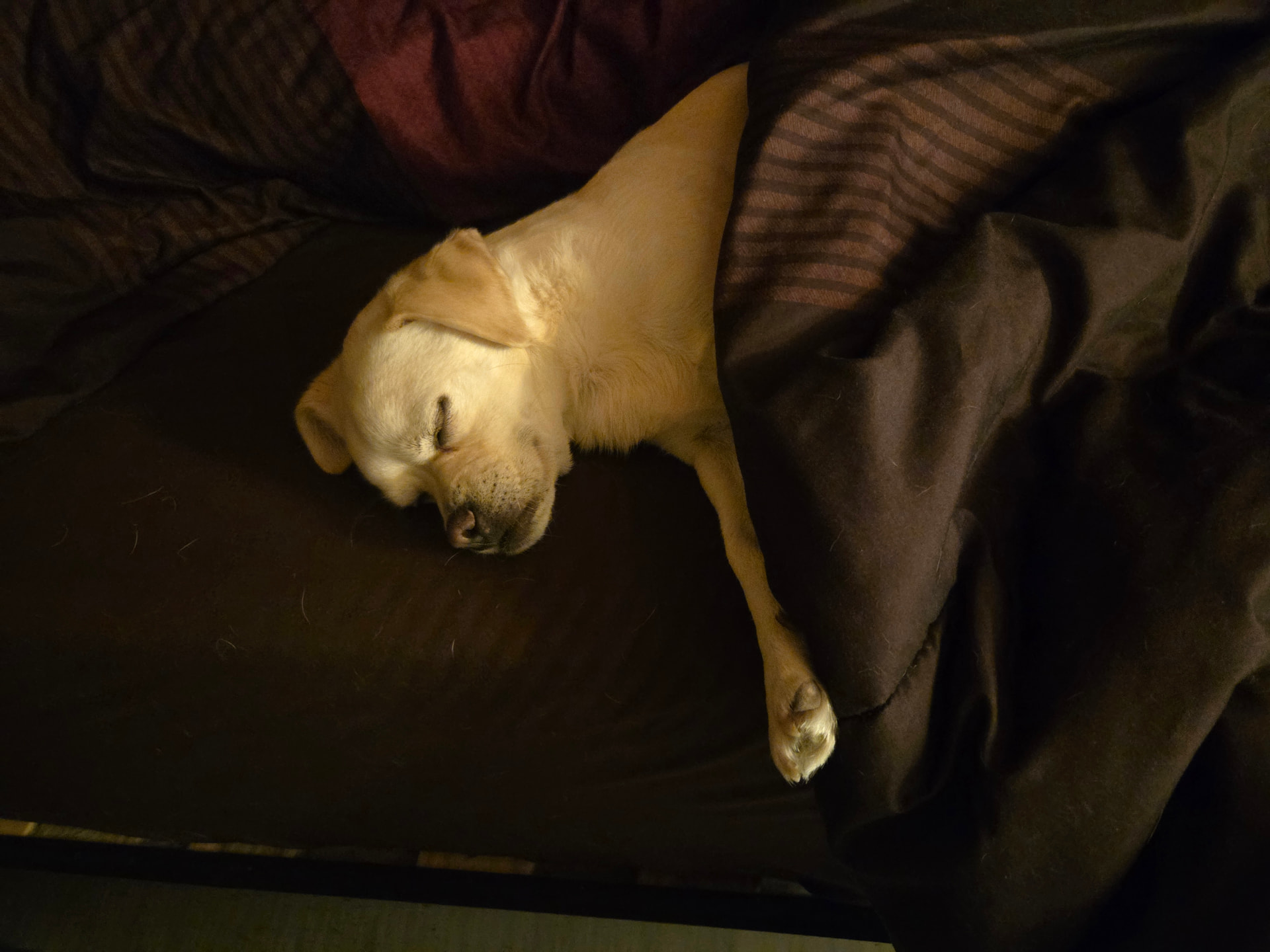 Waldo used to not want to go under the blankets, but he’s picked up a few habits from wise brother Chief.