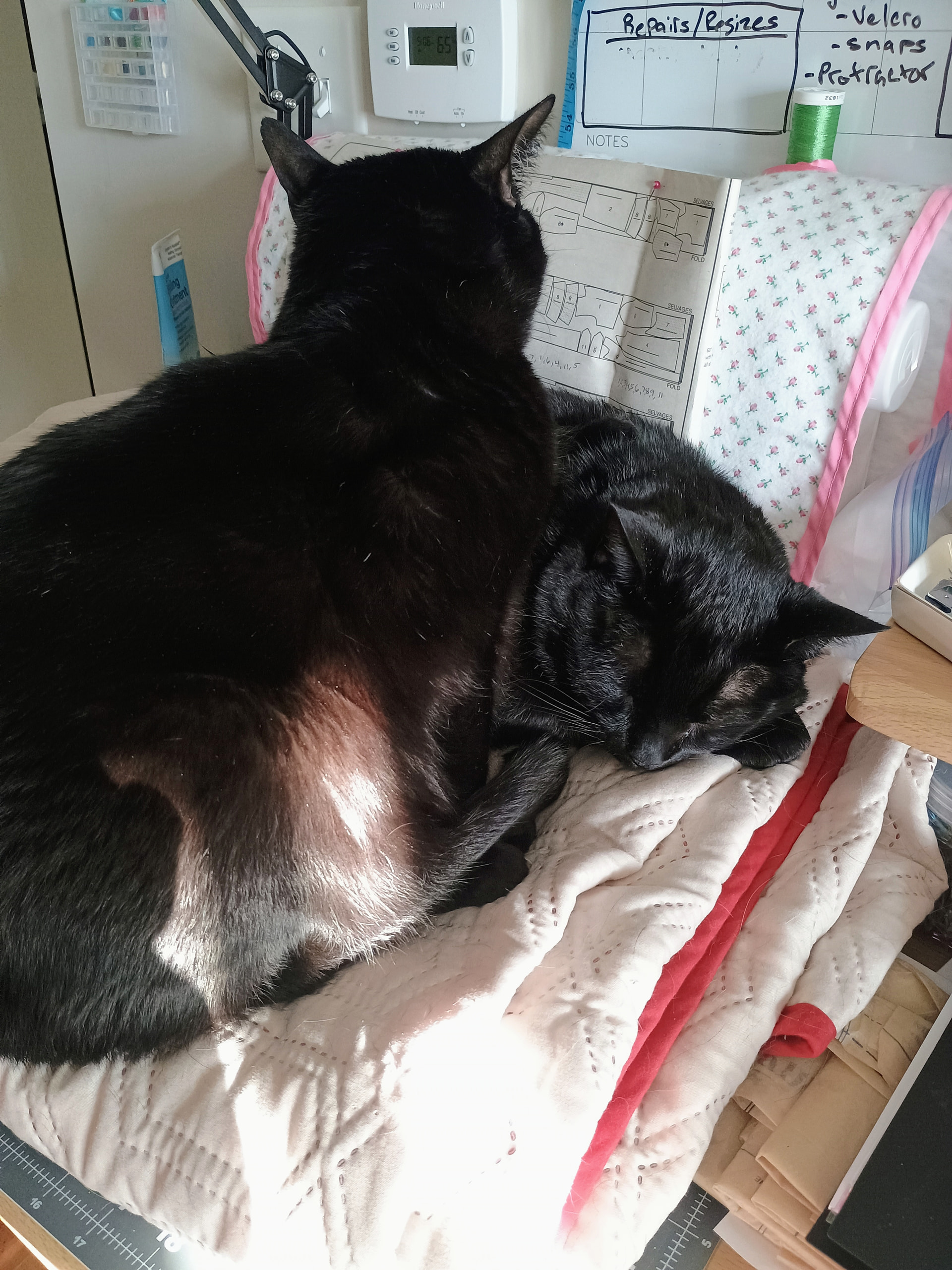 One on one side, one on the other. There is no side swapping. There is only me, trying to shoehorn myself in between.