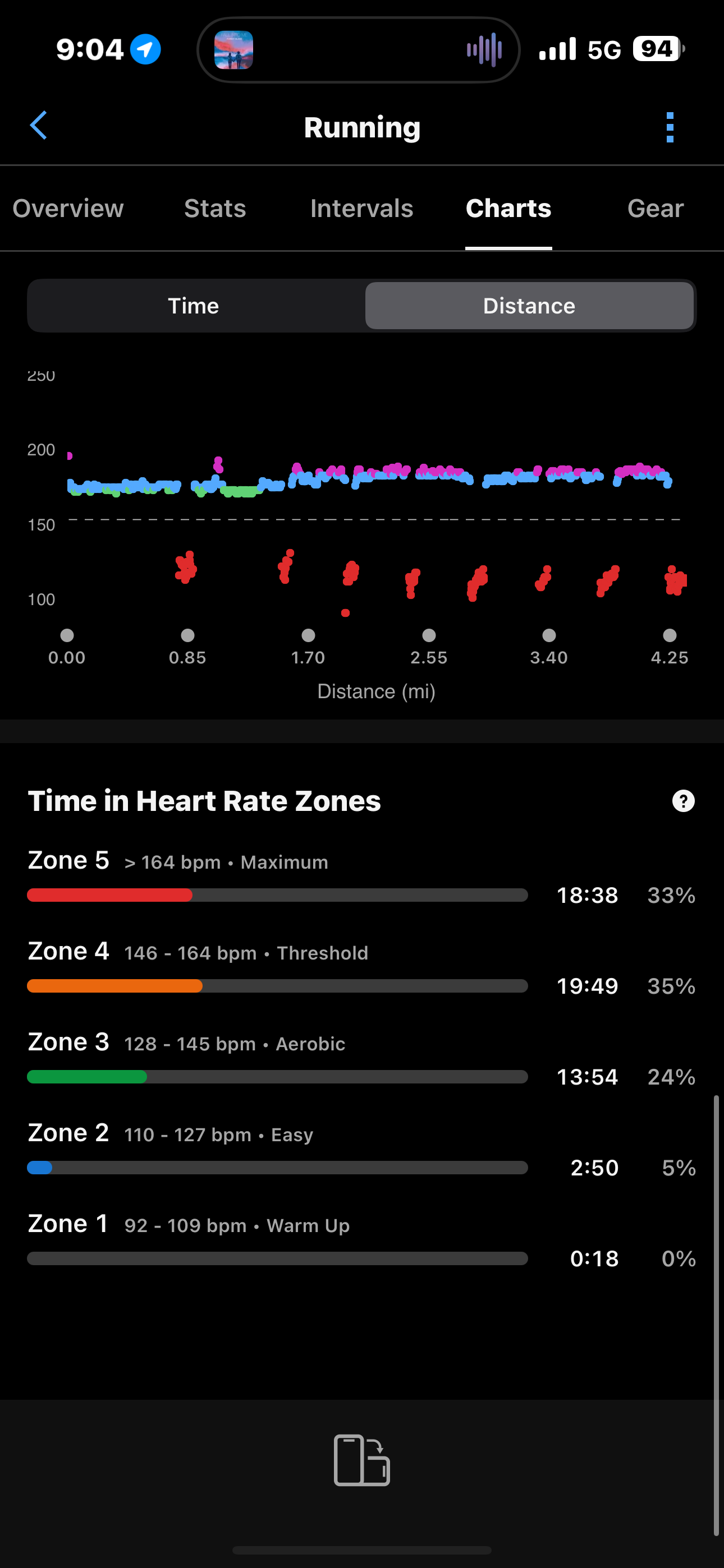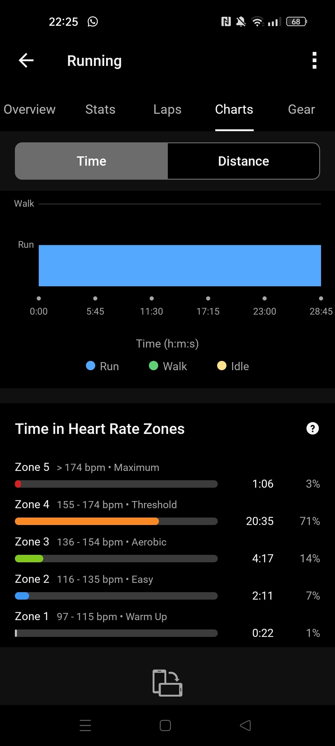 I don’t know guys. This whole run was in zone 4 but from the description of zones, it feels more like zone 2 or 3. I was slow, relaxed, I could easily hold a conversation and run further. I don’t know if it’s even possible for me to have lower HR while running.