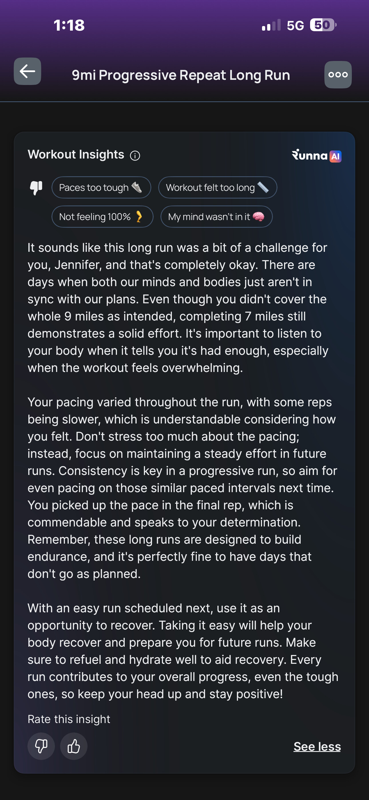 It was very much a walk/run situationship. I was in such a negative headspace and hung up on doing 9 miles. I didn’t want to and I still don’t see how it will help me improve my 5k time.
