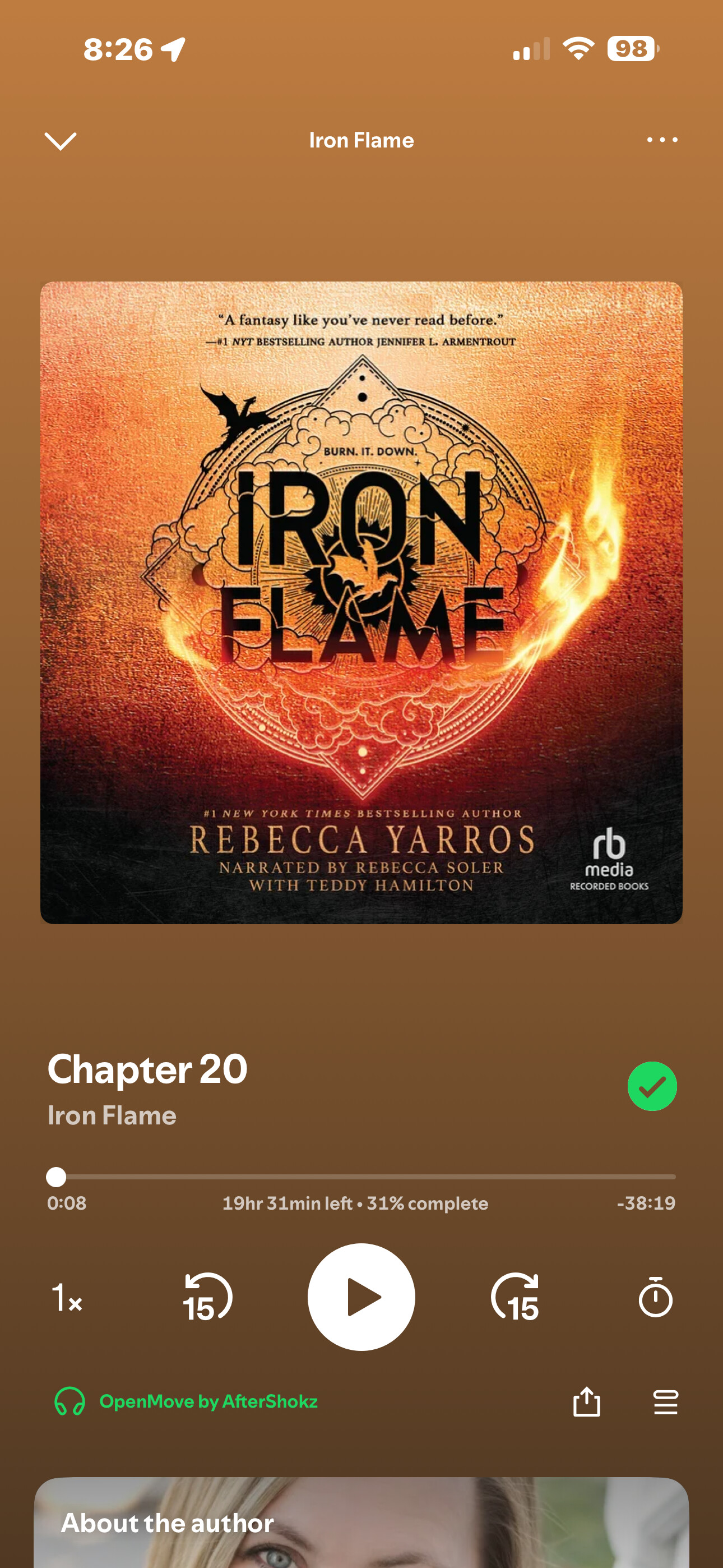 I have found that it’s easier for me to keep going if I’m listening to a book vs music. I get lost in the book and before I know it I’m X amt of the distance in. This is my current book. I just fell into the dragon/fairy world. I listened to ACOTAR series first and now I’m in this dragon series.
