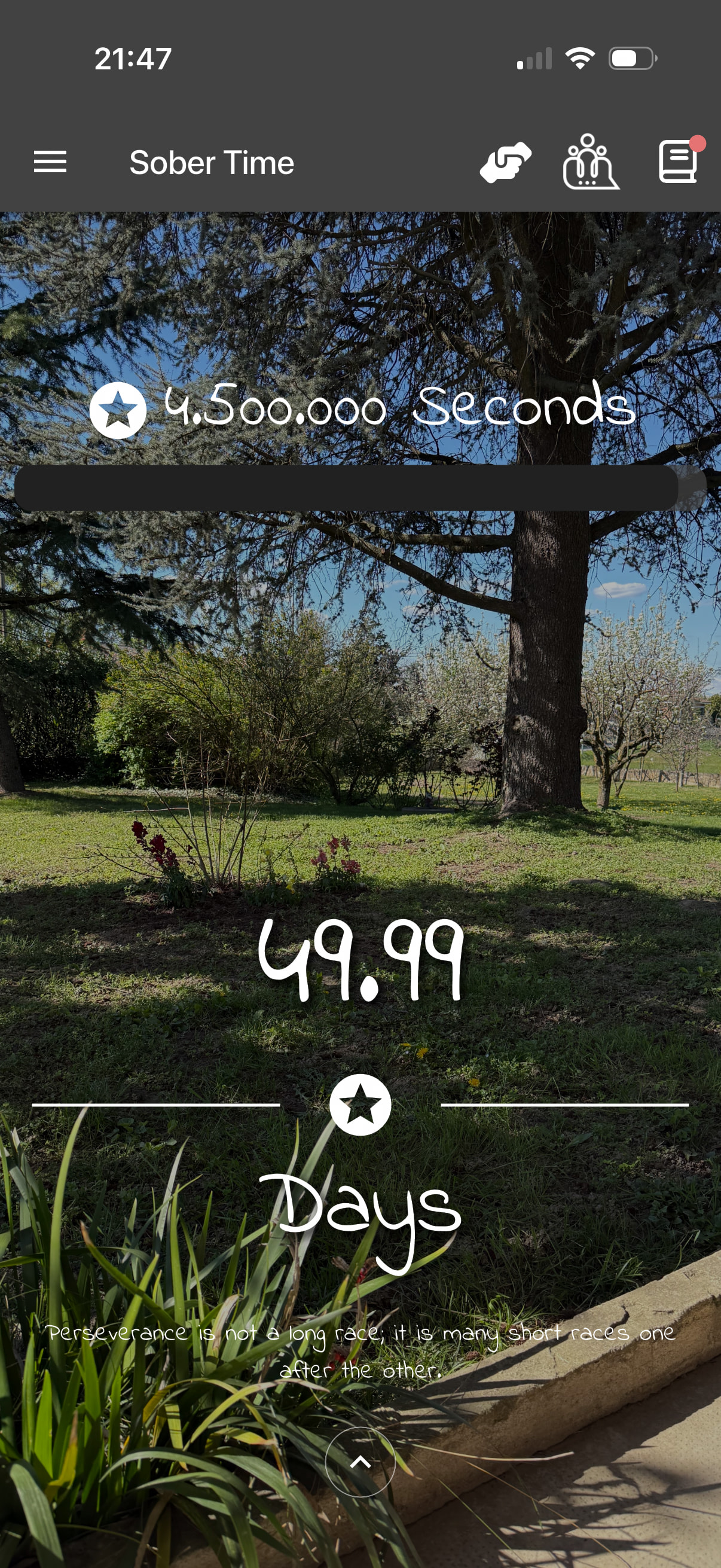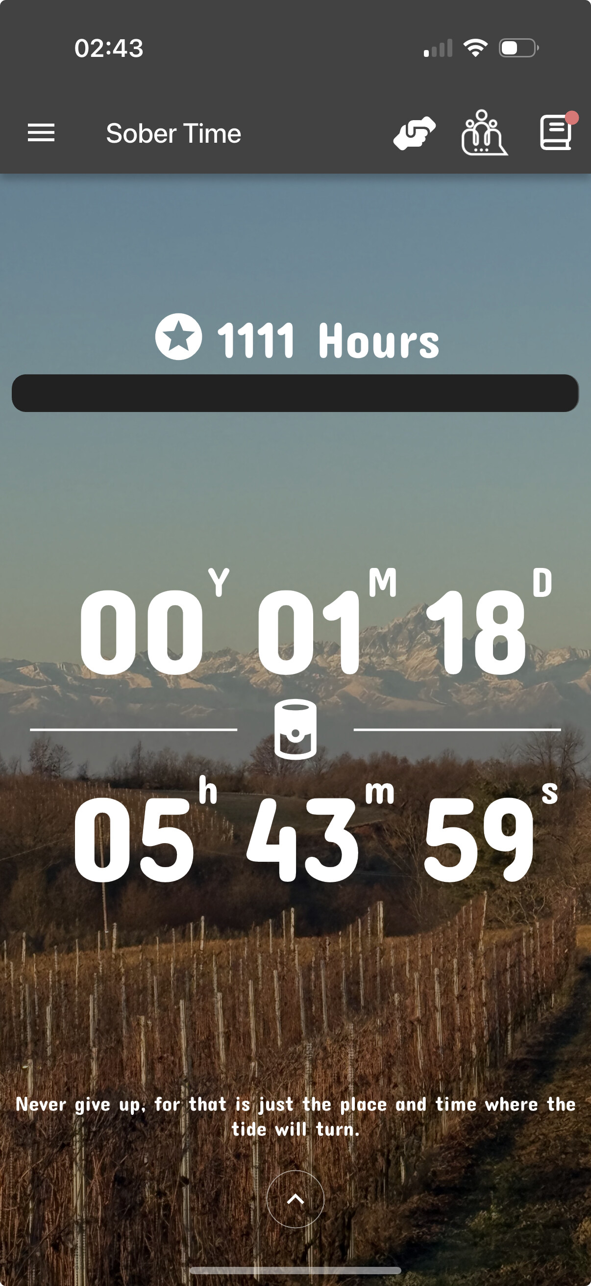 My motto always is … one minute one second one day at a time. But I never thought to track the hours. I think it’s really cool. You’re doing Great! Much to feel proud of !