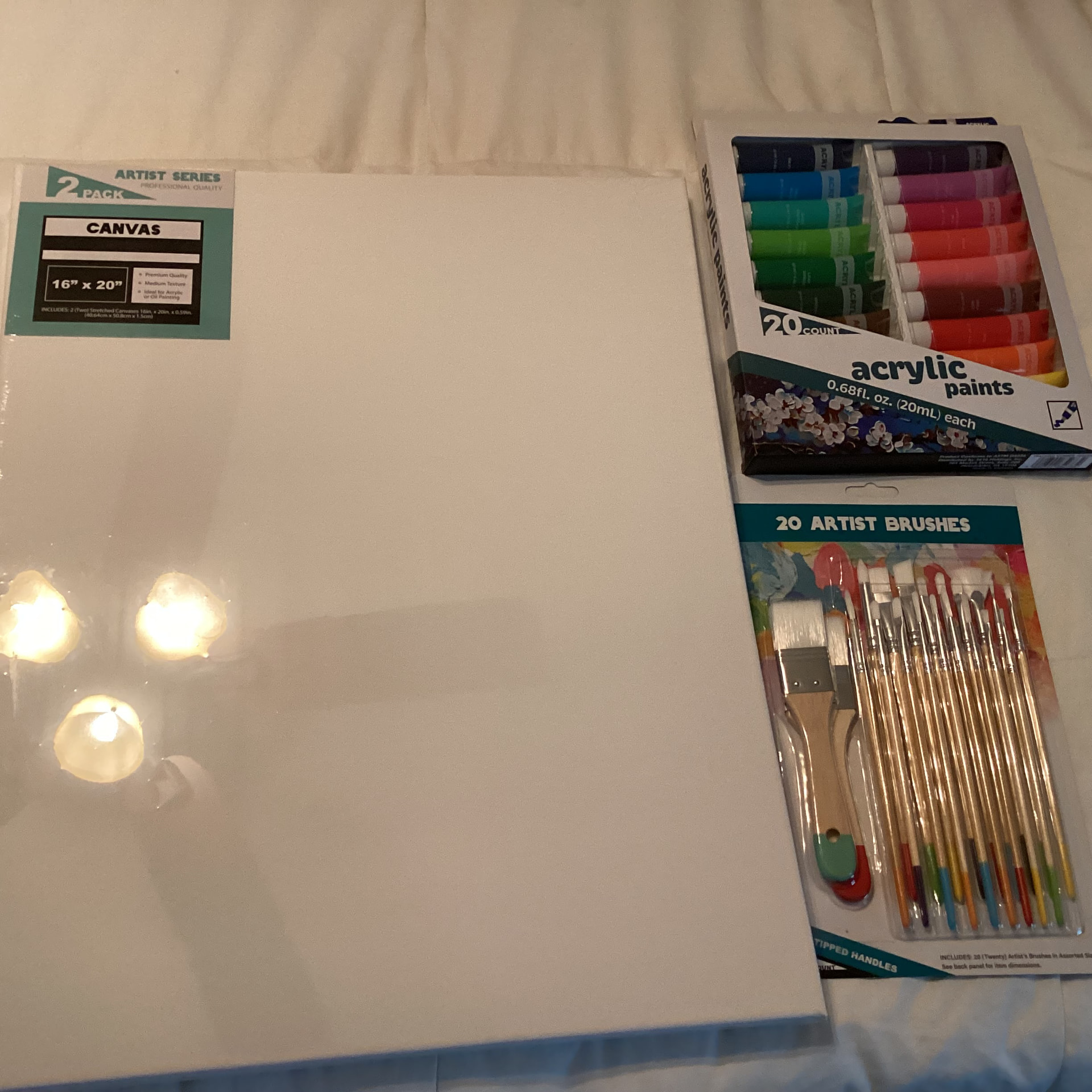 Got some more cheap paint supplies because honestly I’m still a beginner and learning and it’s been a long time since I worked on art. Plus, I didn’t really want to drive far today and got all of this stuff for $16 which I think is a good deal, they have a really good deal on canvas at five below which is like a retail store.. Supposed to be rainy and windy today so I’m going to lay some dropcloth down in the shed and probably just go crazy with one of these canvases. I definitely want to invest in some better brushes and paint but for now I’m not stressing and just having fun.