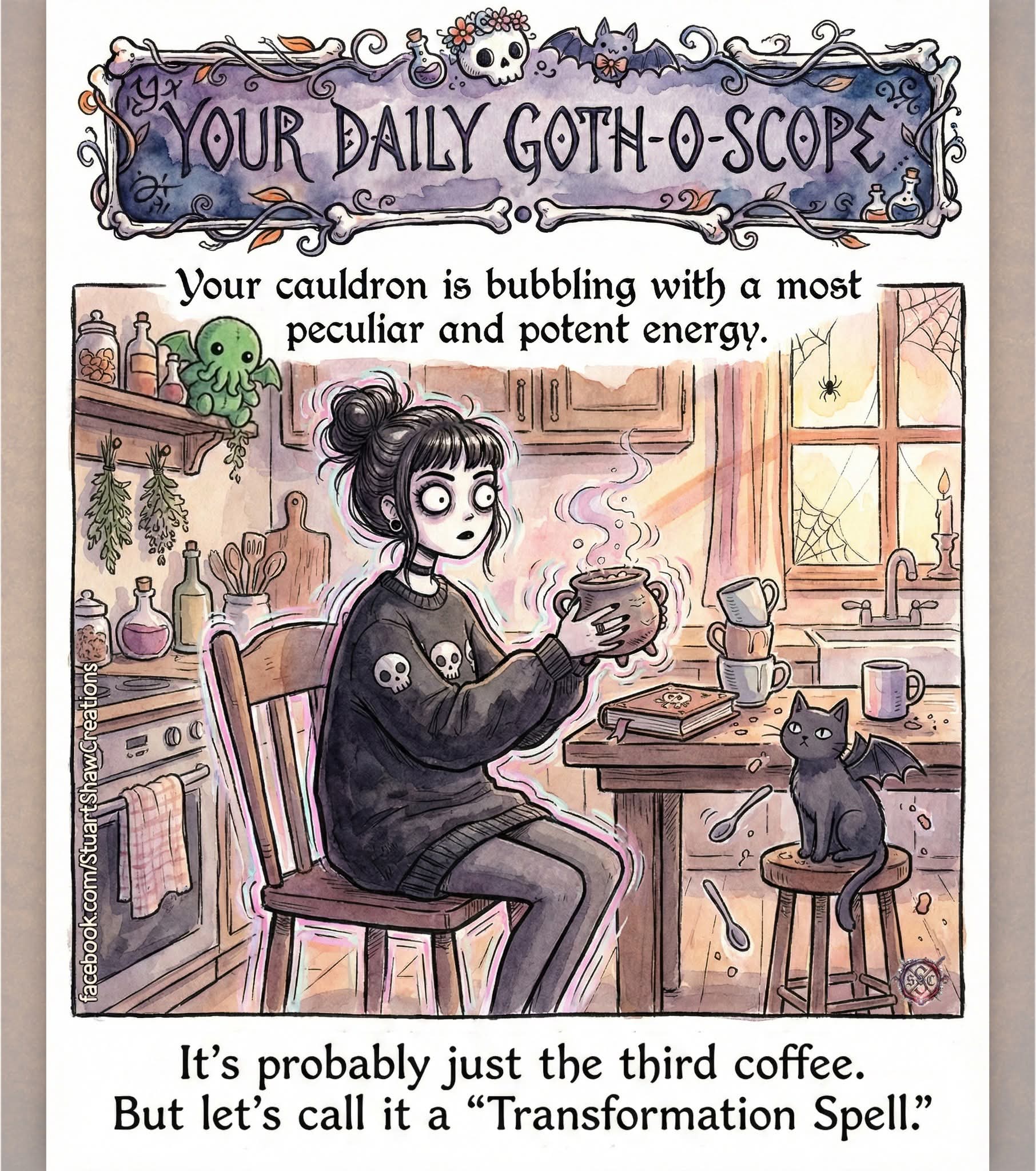 3rd tea of the morning, so strong it strips enamel, paint and dissolve gold; building up to espresso(s) (Skull