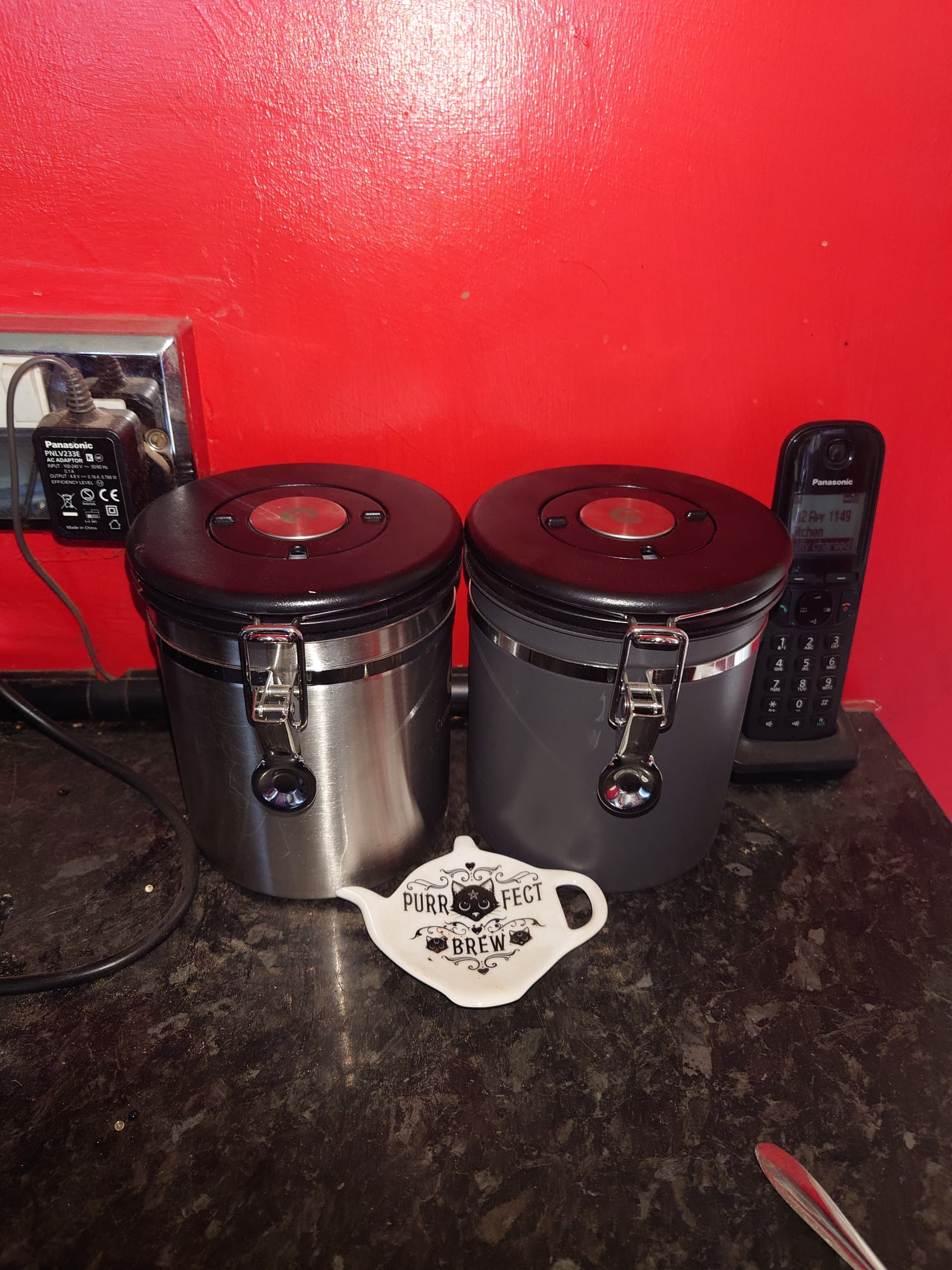 New espresso set up, with coffee gator storage for tea & coffee, airtight excellent buy, and my favourite mug