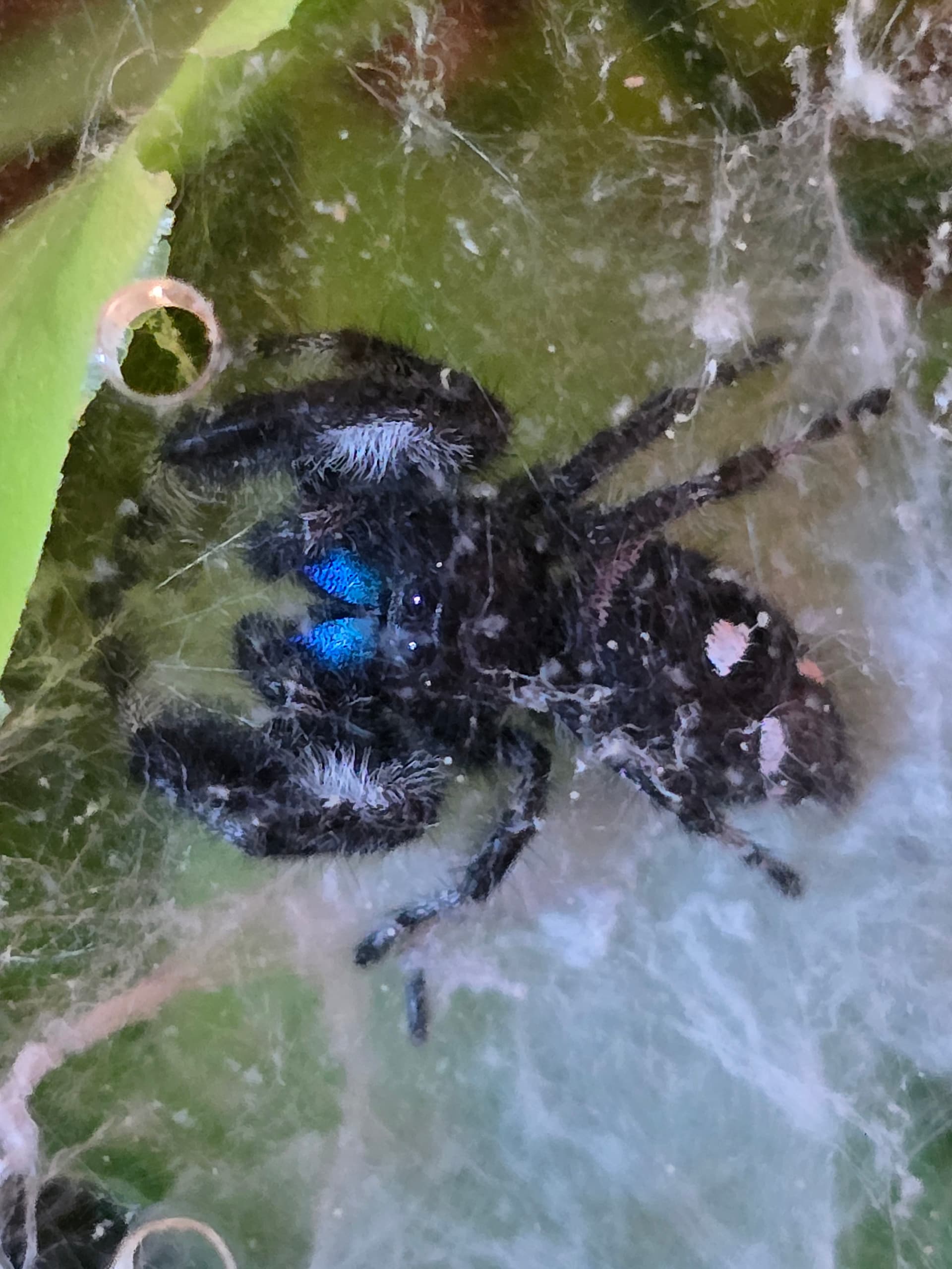 I didn’t take a pic of Mr + Mrs False black widows, but unfortunately disturbed their nest… Hundreds of black widow babies scattered off…