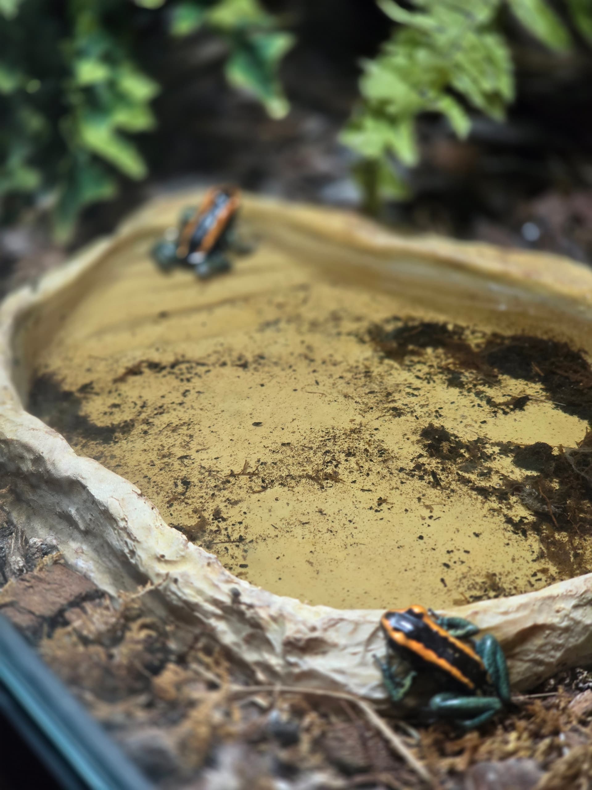 A rare pic of both frogs in/next to the pond & a close up of the blurry one