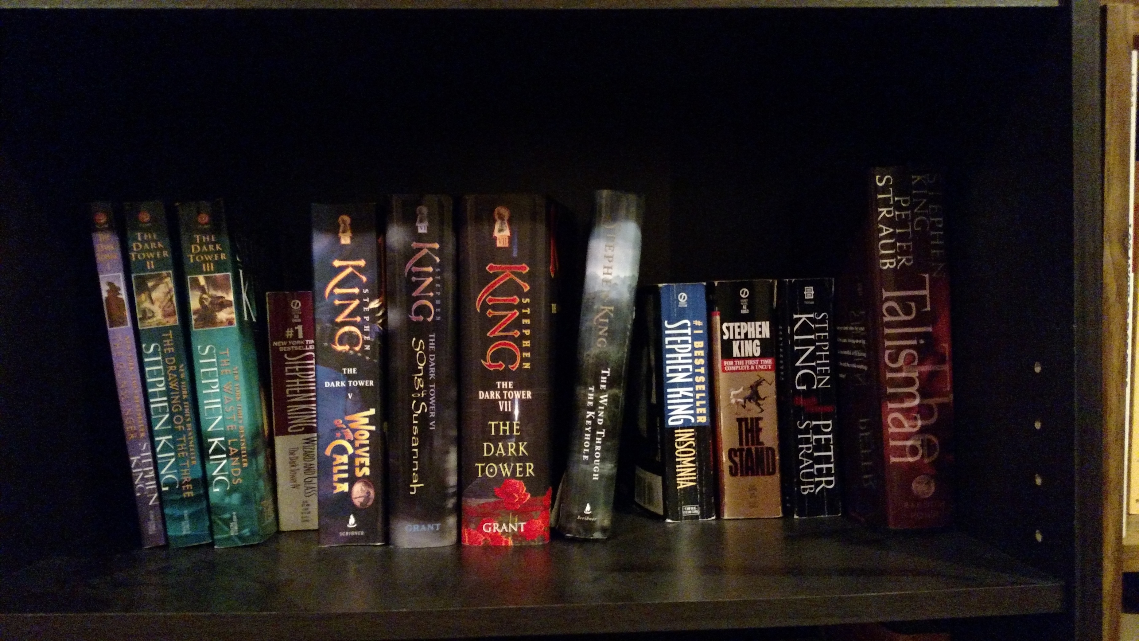 I read every Stephen King book there was until about 1991 when I finished The Wastelands and started waiting for Dark Tower IV. I refused to read any more SK until he put that damn book out. He didn’t put it out until 1997. So I got sidetracked on authors like Robert Jordan. Now there are lots of SK books I haven’t read. I purged my collection at some point, and now I only have my favorites.