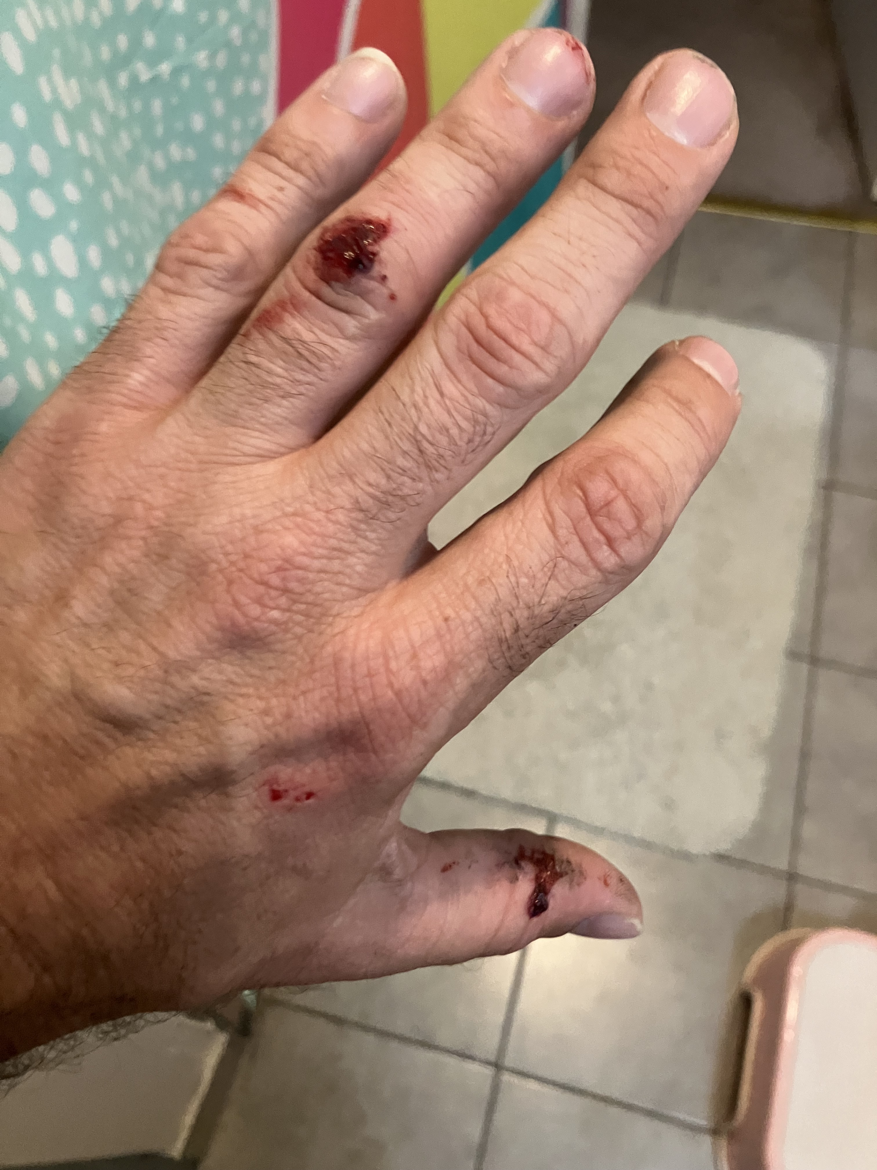 Oh man. Hope your thumb heals quickly. Grateful you are safe. Crash sounds scary (clipped by a car