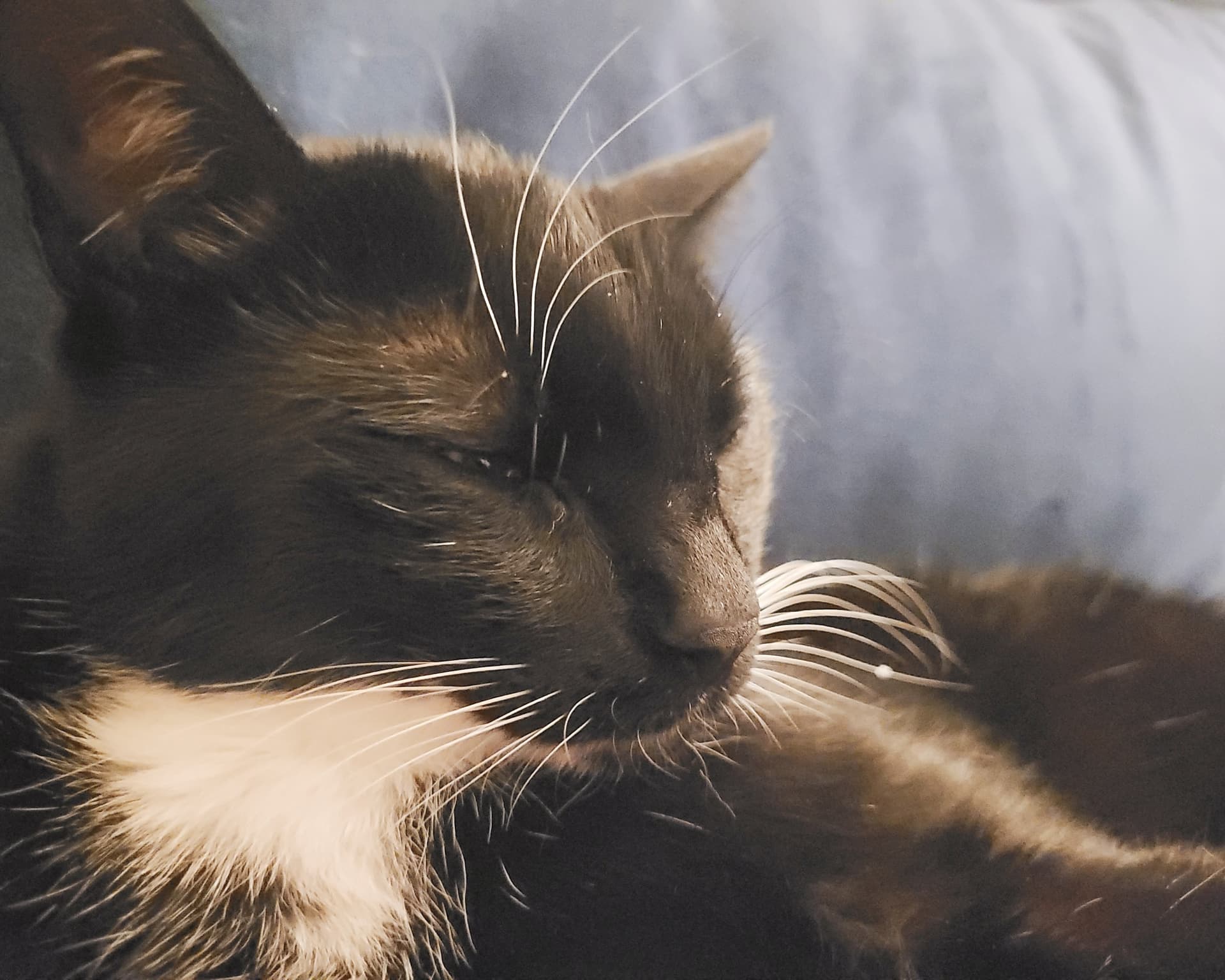 Milo one second away from falling asleep. Or maybe making plans how to take over world domination. Can‘t tell for sure.