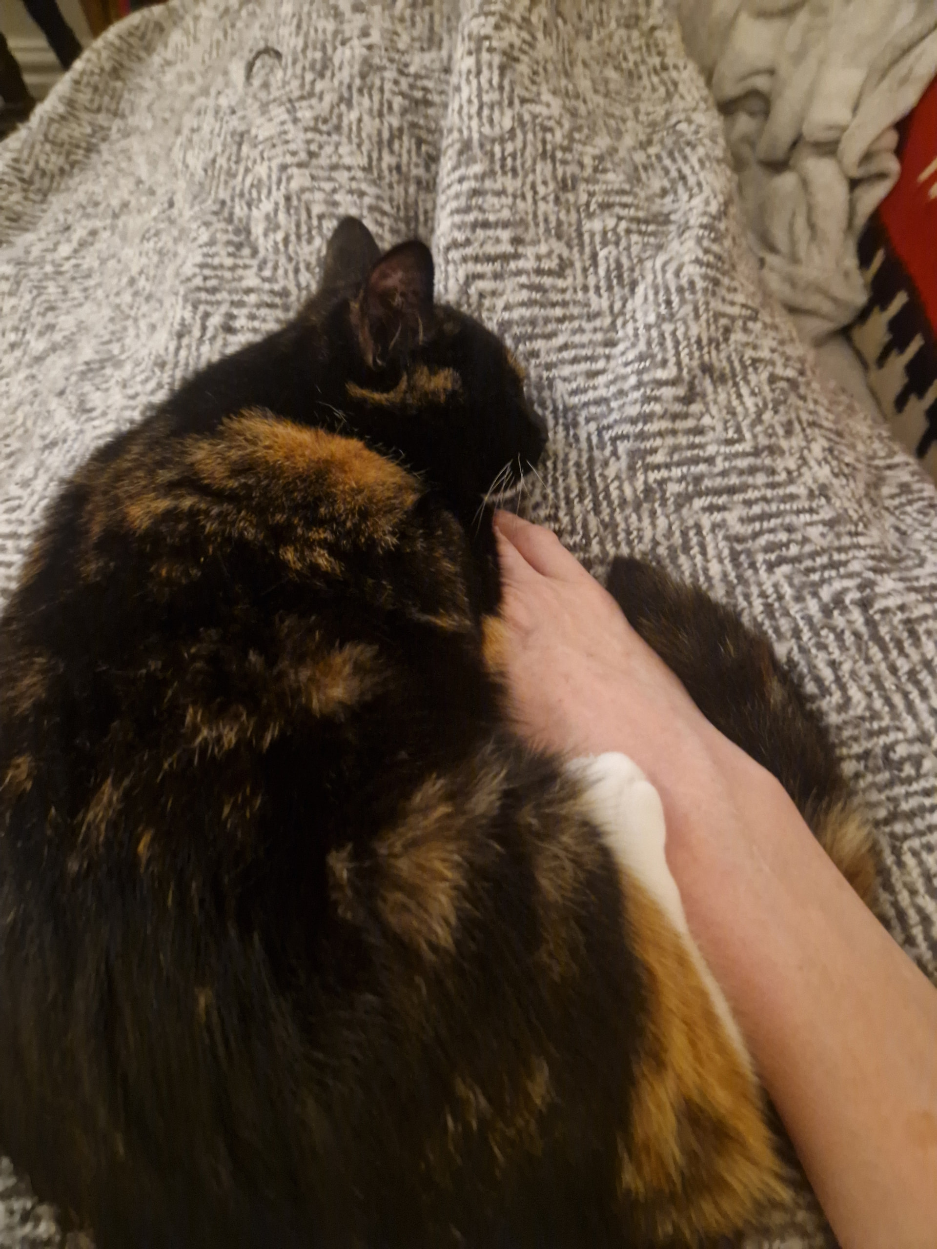 anyone else’s cat love sleeping on their hand/forearm? Minky makes a point of walking up my arm before settling down for a snooze ![]()