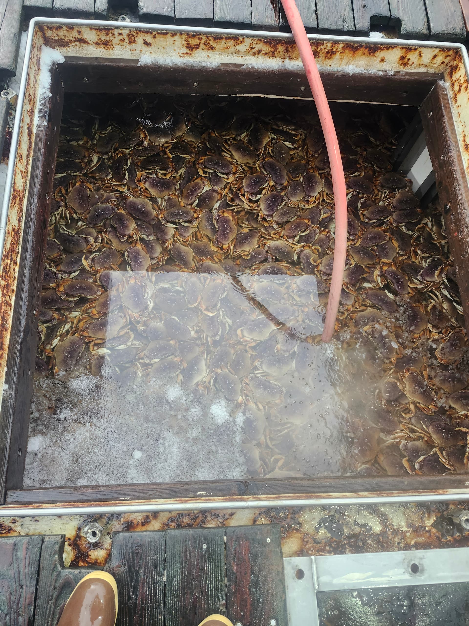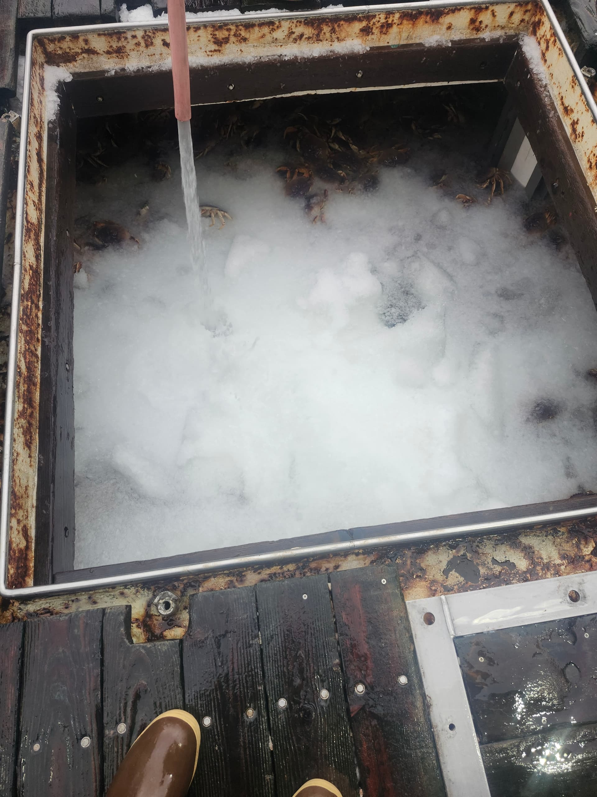 We are cooling these crab off to make them less fiesty during offload.
